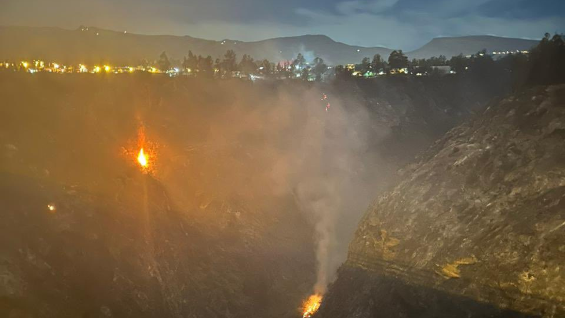 El alcalde de Quito, Pabel Muñoz, aseguró que no hay afectaciones a viviendas tras el incendio forestal originado en el cañón del Chiche, en Tumbaco.