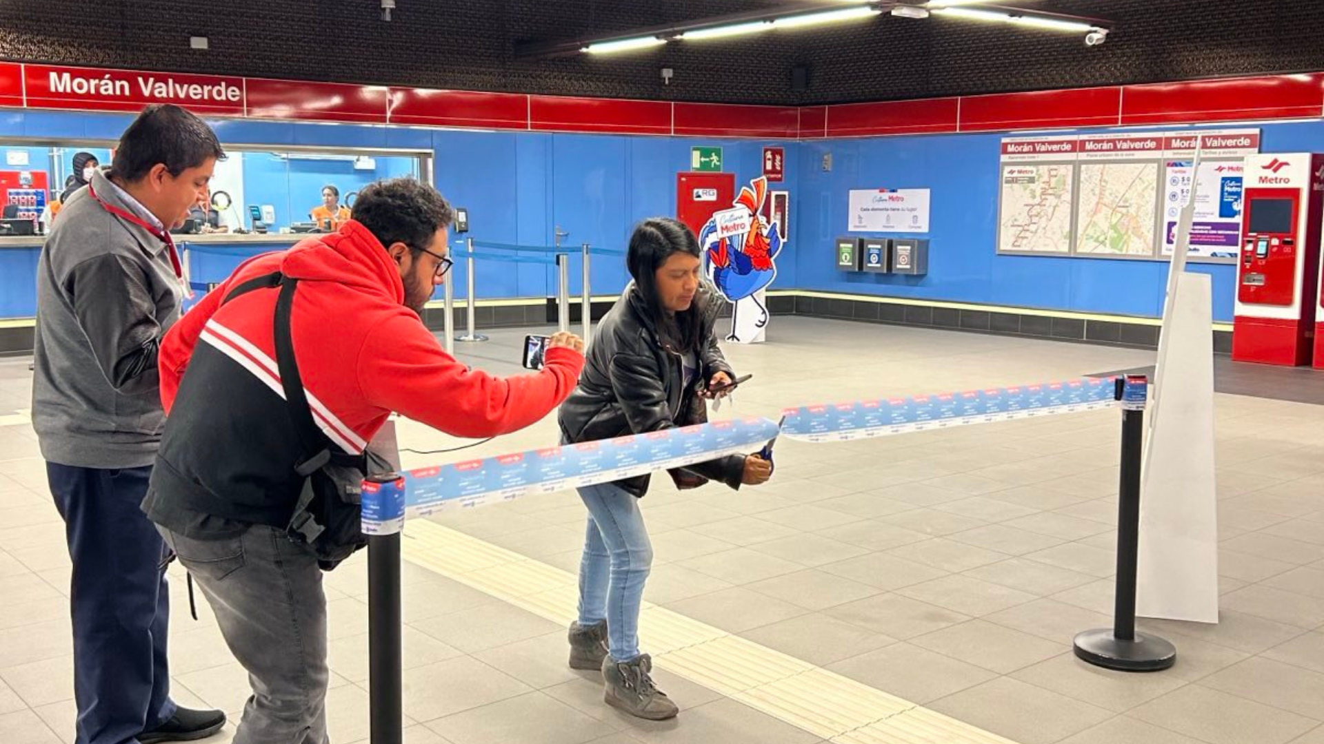 Los primeros pasajeros que llegaron a una de las 15 estaciones fueron los encargados de cortar las cintas como parte de la inauguración.