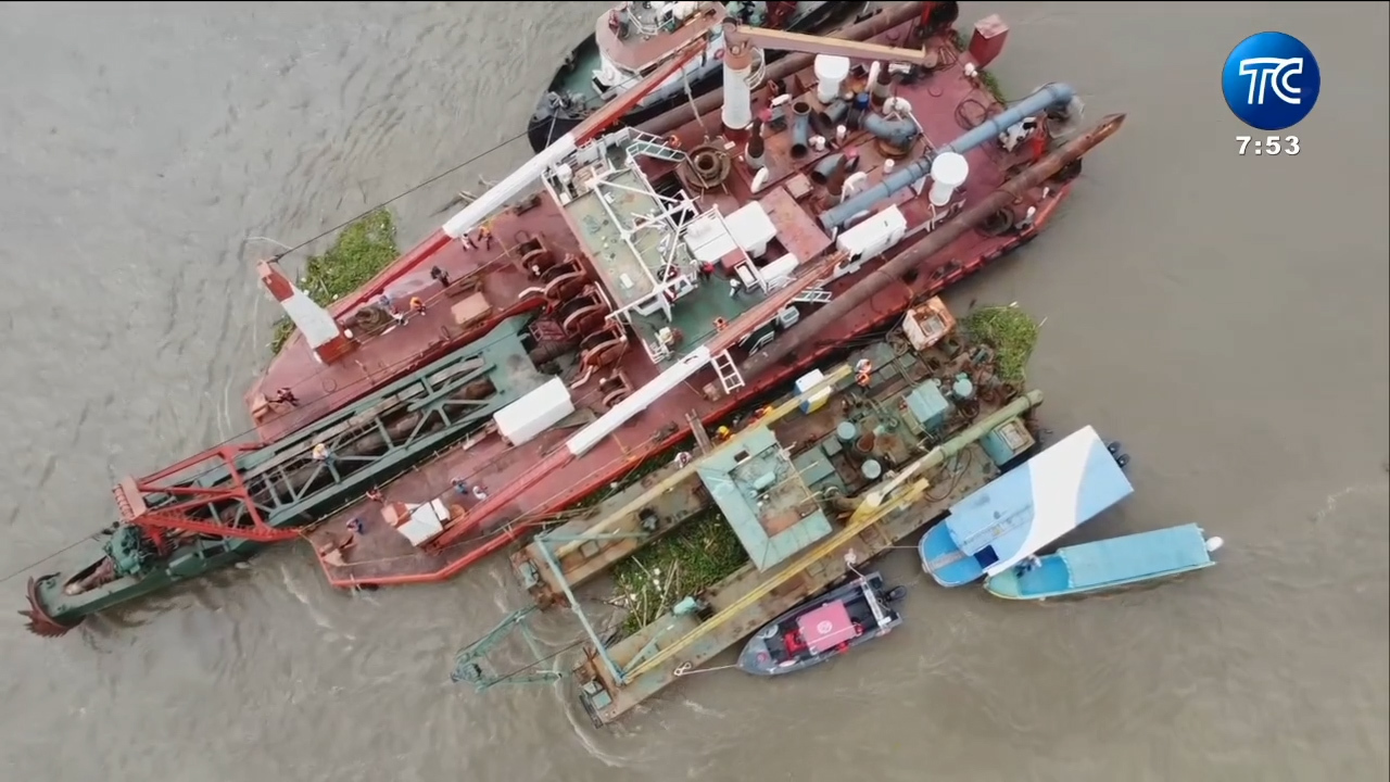 La prefecta, Marcela Aguiñaga, estuvo en la embarcación de la draga para constantar las operaciones y explicó que comenzará a extraer los sedimentos del islote El Palmar dentro de 30 días. A lo largo de este tipo el consorcio se encuentra cobrando multas debido a los restrasos en las fechas de cumplimiento.