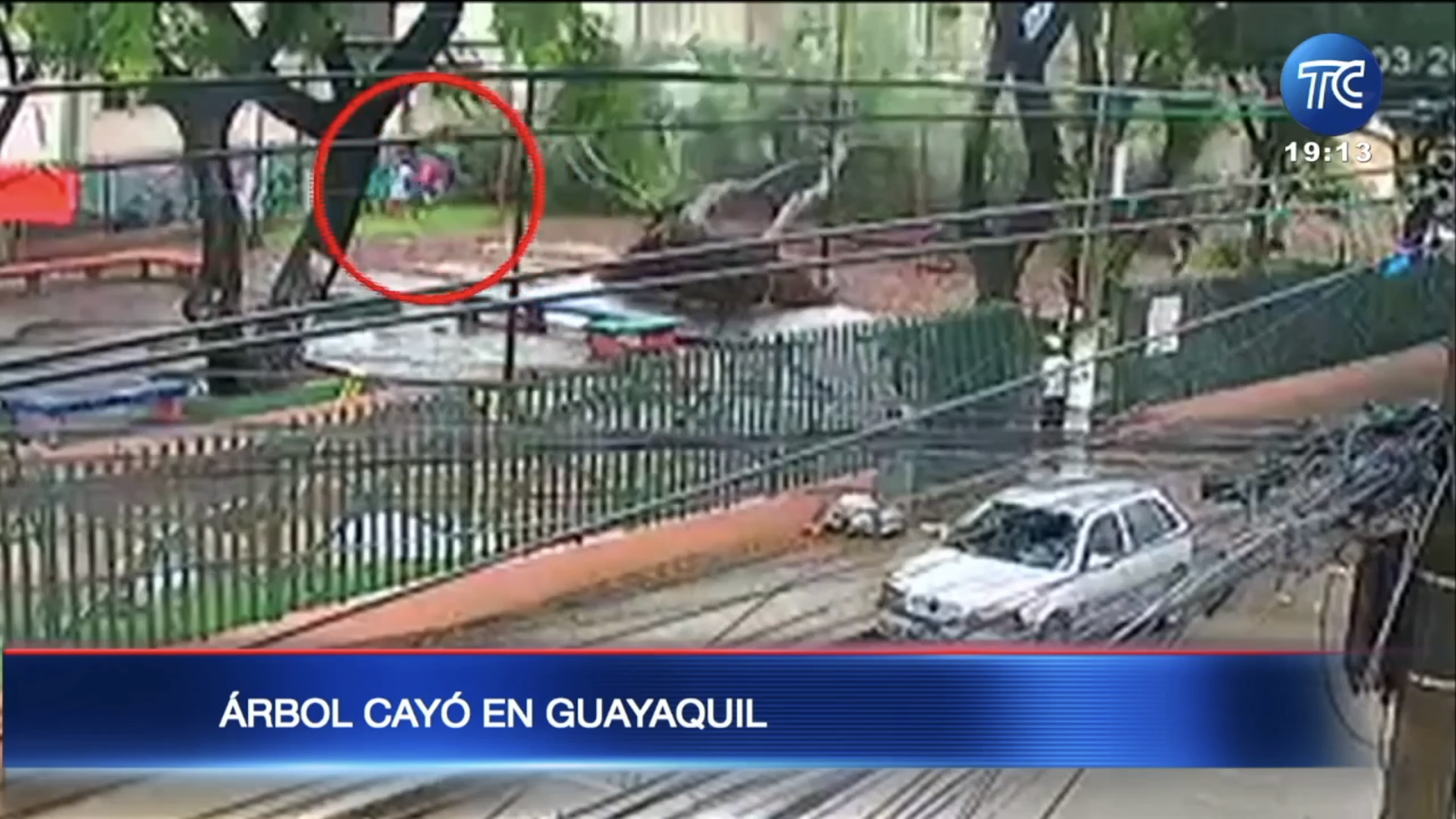 Cámaras de seguridad captaron el momento en que un árbol se cae ante las fuertes lluvias en Guayaquil. Un ciudadano circulaba en el parque y reaccionó a tiempo para evitar ser aplastado por el árbol. Compartir