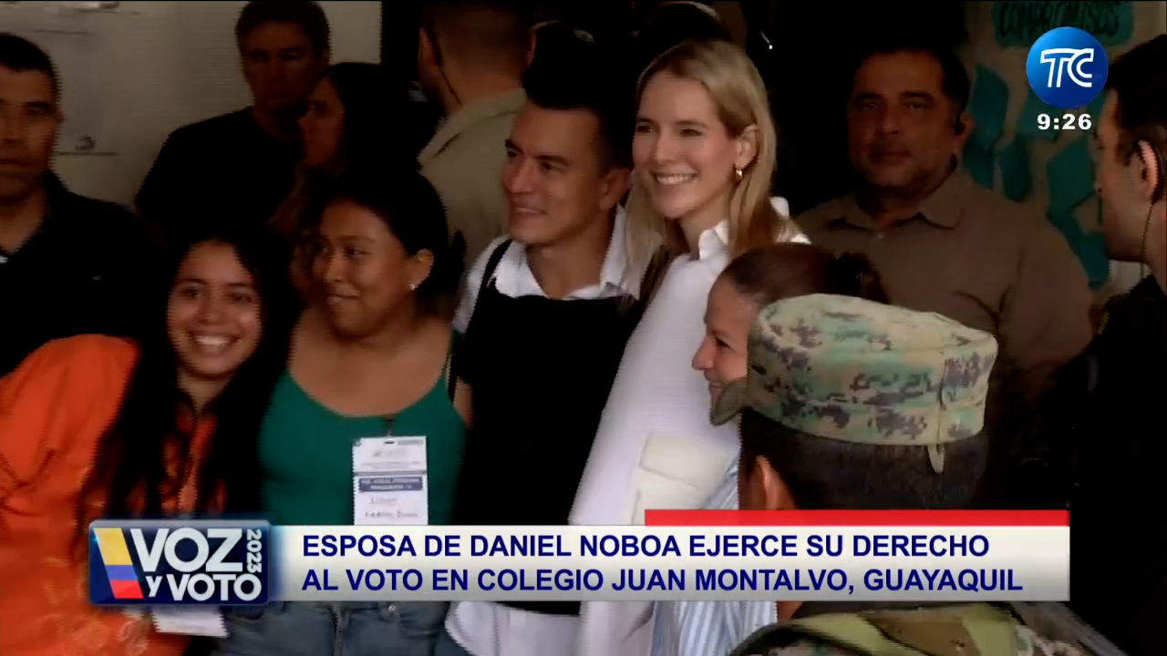 Fuerte seguridad privada y estatal llegó al colegio Juan Montalvo, en Guayaquil, donde la esposa del candidado presidencial, Daniel Noboa, ejercició su voto.