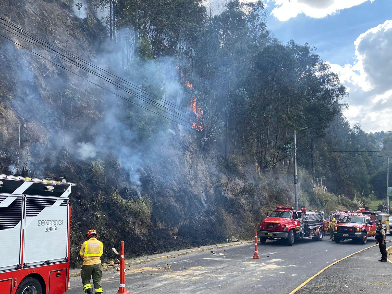 Más de 20 incendios forestales se han registrado en las últimas horas en Quito y sus alrededores. Esto ha afectado más de 60 hectáreas de pasto y vegetación.