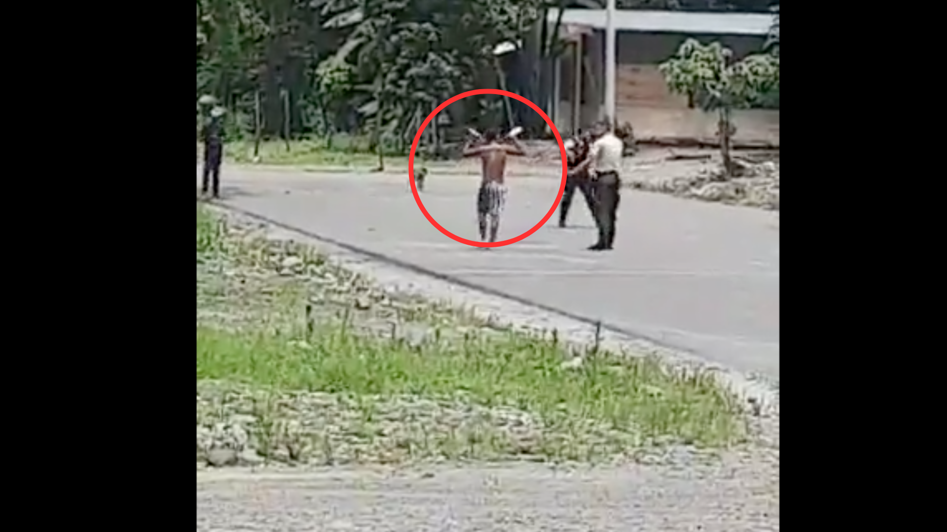 Este hecho sucedio en el cantón Valencia, provincia de Los Ríos y trascendió debido a las imágenes en video que se viralizaron rápidamente. En el hospital el hombre seguía amenzando con matar a los policías. Las autoridades informaron que el atacante tiene antecedentes penales.