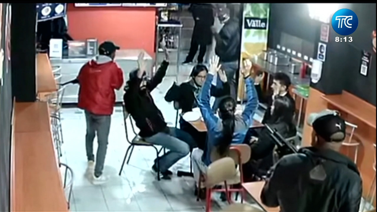 Cámaras de seguridad captaron un atraco en un restaurante en el sector de La Coruña, norte de Quito. Los delincuentes amanezaron con armas de fuego a los trabajadores y clientes que se encontraban en el lugar.