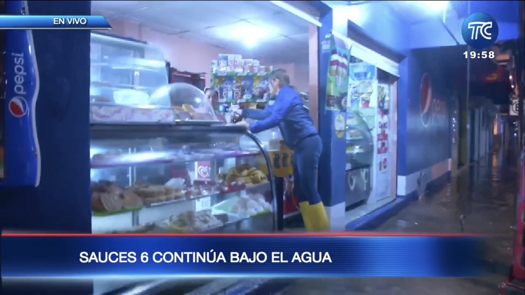 El sector Sauces 6, en el norte de Guayaquil continúa bajo el agua. Varios negocios registran afectaciones y algunos se vieron obligados a cerrar. Compartir