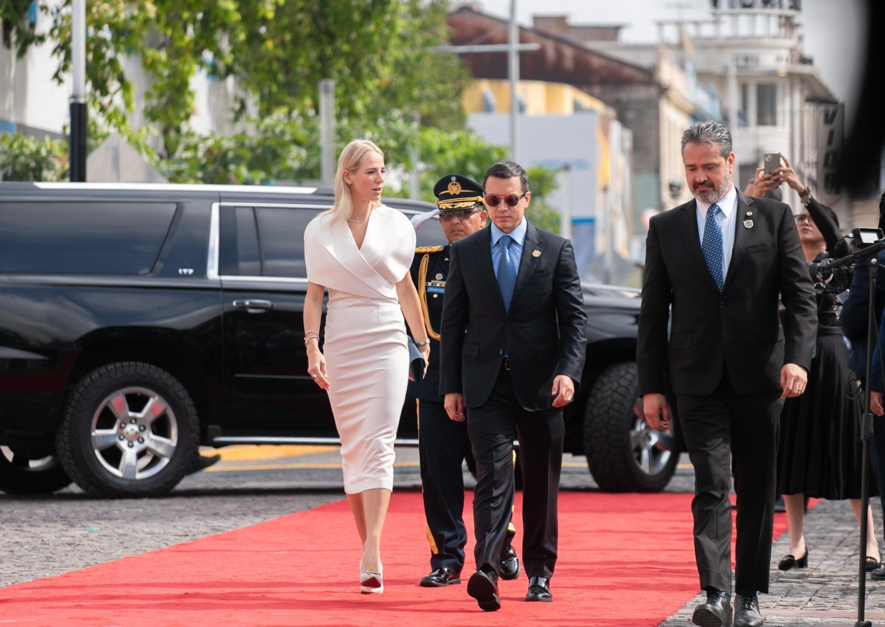 Este sábado 1 de junio, el presidente ecuatoriano Daniel Noboa y la primera dama, Lavinia Valbonesi, estuvieron presentes en la ceremonia donde Nayib Bukele asumió su segundo mandato en El Salvador para el periodo 2024-2029.