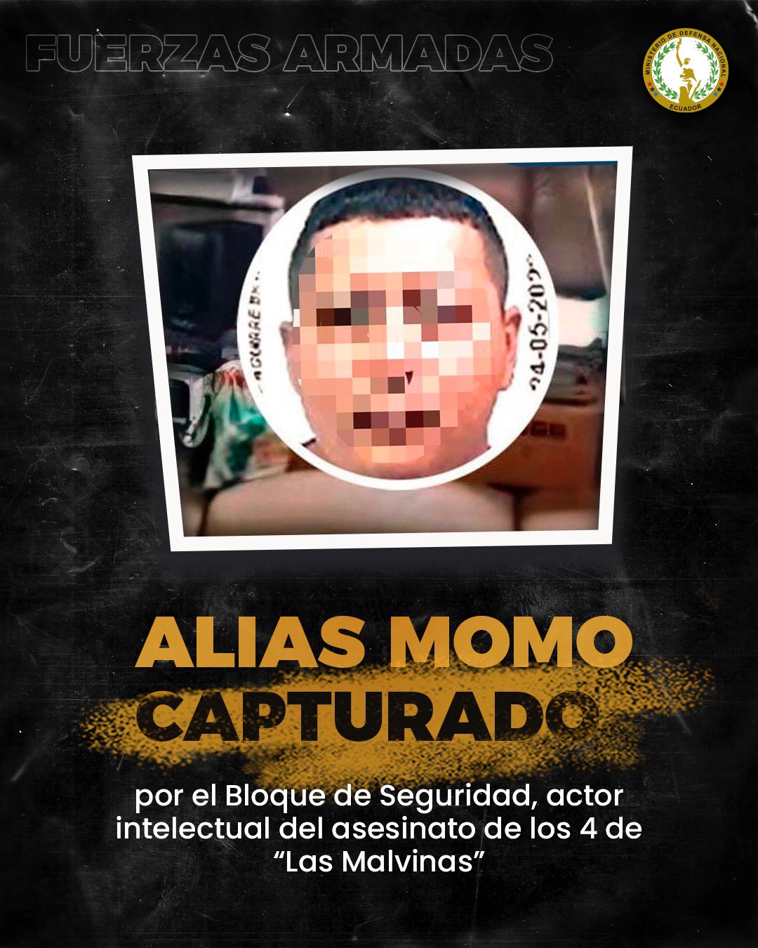Alias ‘Momo’, cabecilla de la organización criminal Los Águilas, fue capturado en un operativo ejecutado por la Policía Nacional, en colaboración con el Bloque de Seguridad. Momo es señalado como el principal implicado en la desaparición y asesinato de los 4 niños de Las Malvinas.