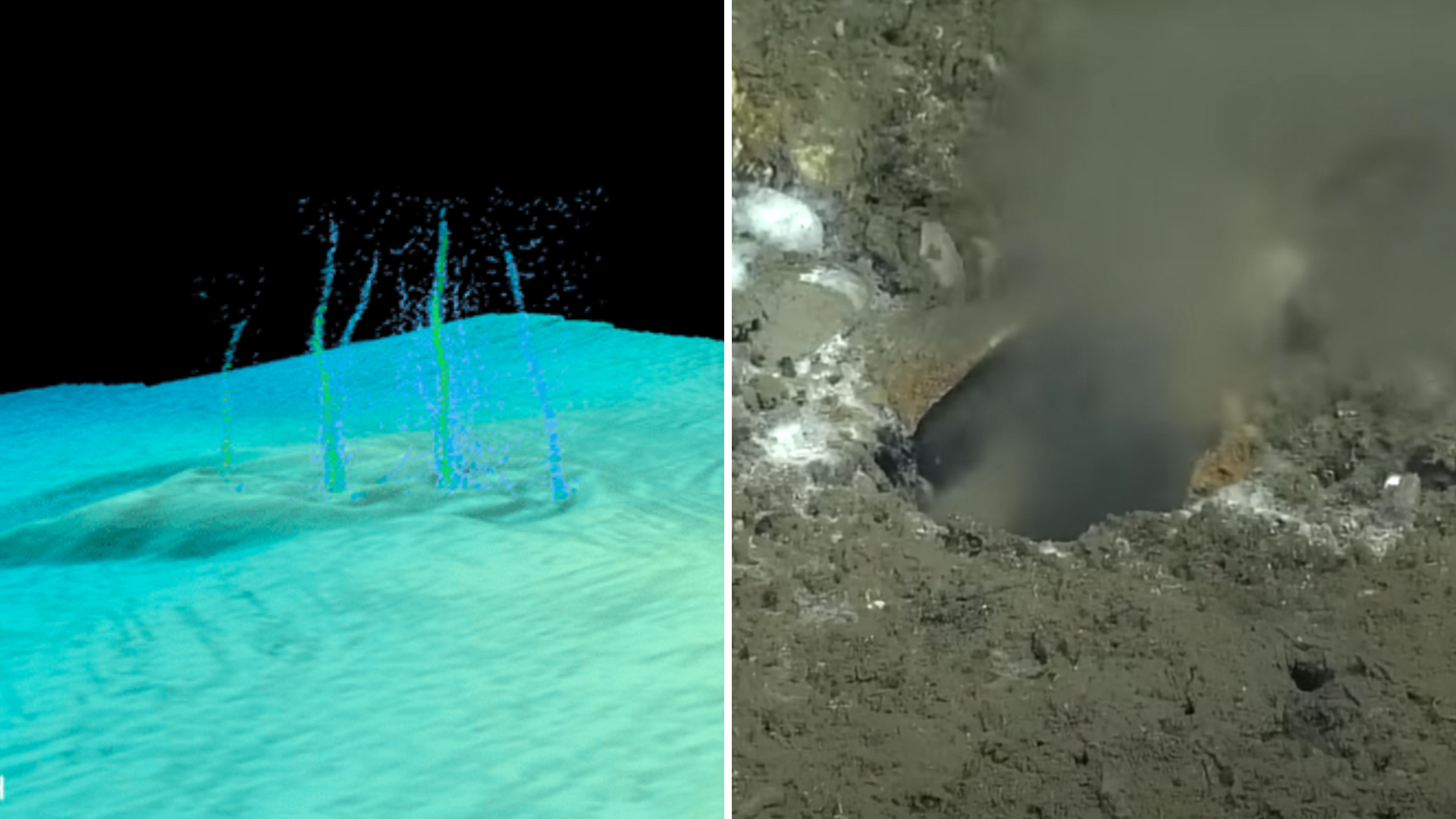 A 80 kilómetros de la costa de Newport, Oregon (Estados Unidos), los científicos utilizaron un sonar de barco para identificar los penachos de burbujas que brotaban desde el fondo marino, a 1,2 kilómetros de profundidad.