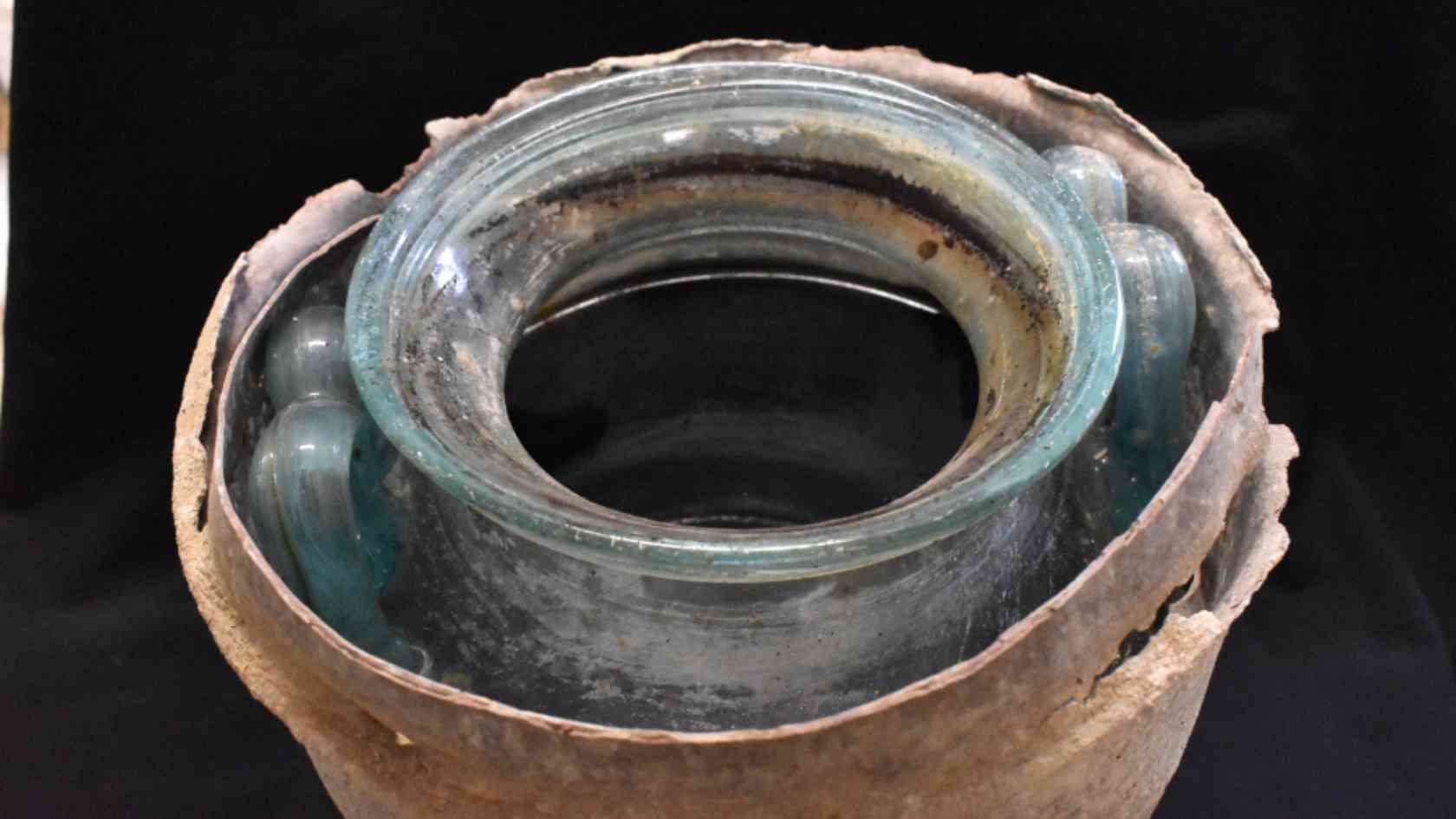 Dentro de este sitio, que albergaba seis urnas con restos humanos y varios artefactos, los investigadores encontraron los restos de un hombre sumergidos en un líquido de tono rojizo dentro de una urna funeraria de cristal sellada, en un hallazgo que describieron como «bastante excepcional e inesperado».