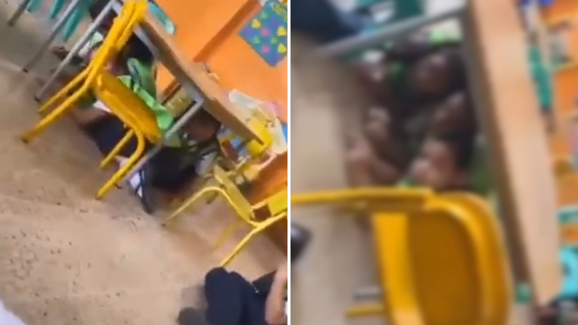 En un video publicado en redes sociales se escucha cómo la profesora tuvo que pedir a sus alumnos que se agacharan y se refugiaran debajo de las mesas. «¡Agáchate, Matías! Debajo, junto a tu amigo», se escucha en el clip.