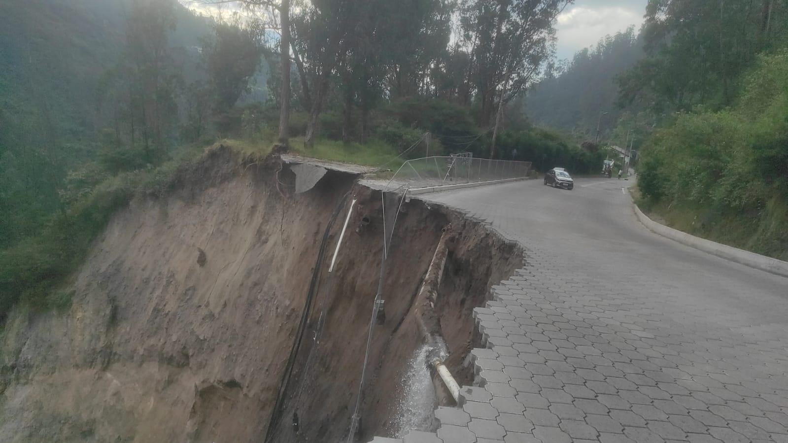🔸Atención: Se registra un derrumbe de la vía en la Av. Conquistadores, sector Guápulo.