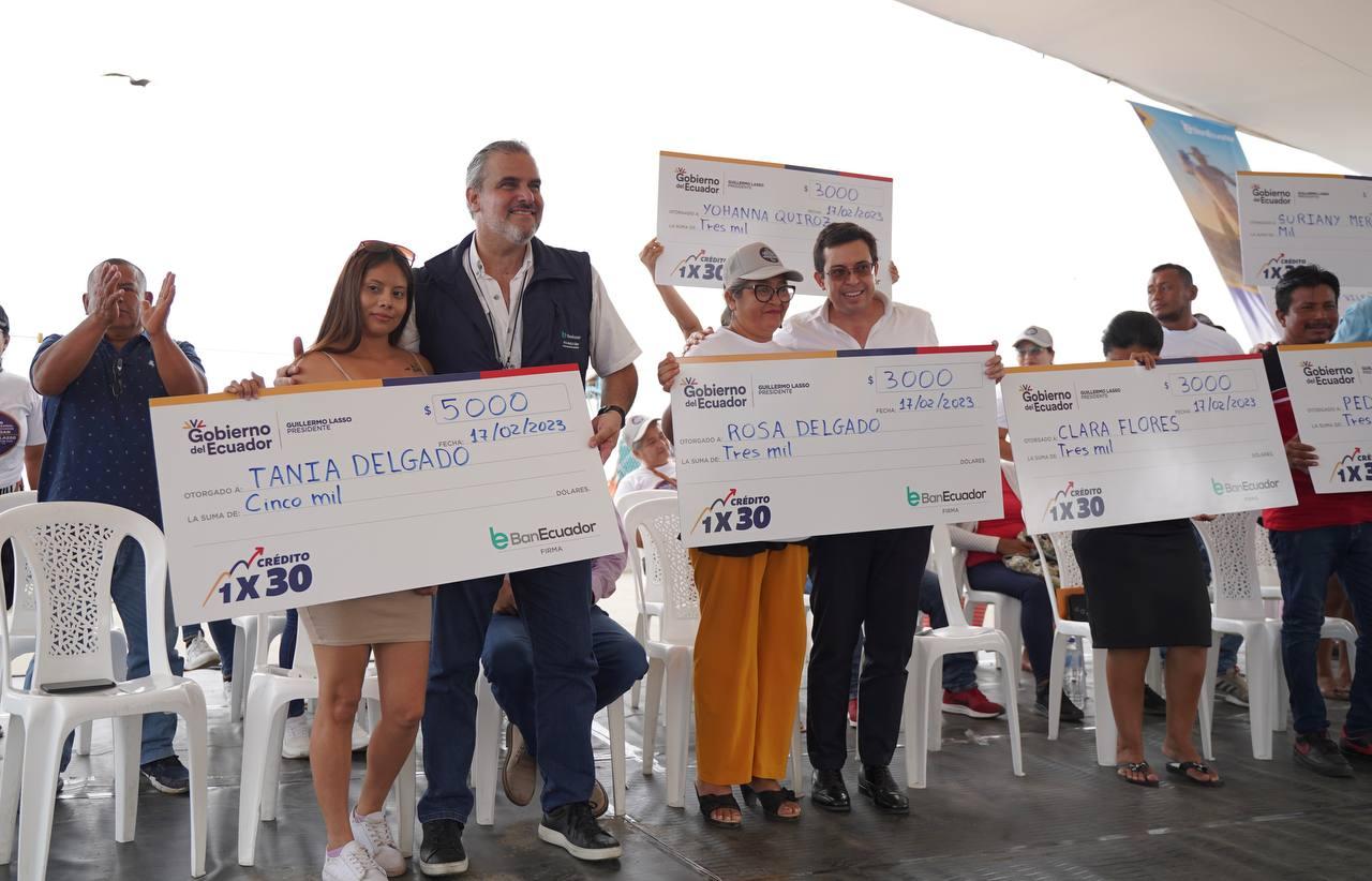 Autoridades de Estado entregaron de manera oficial, este viernes 17 de febrero de 2022, el crédito 1×30 a un grupo de pescadores artesanales por un monto de 30 mil dólares en el sector de «Playita Mía» en la ciudad de Manta, quienes se mostraron gratos al recibir éste monto que será invertido en su actividad productiva.