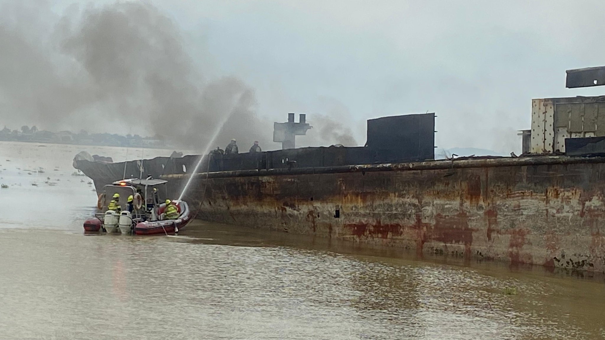 Esta tarde del miércoles, 20 de marzo de 2024, se reportó el incendio de una barcaza en el cantón Durán, sector del Peñón Del Río.