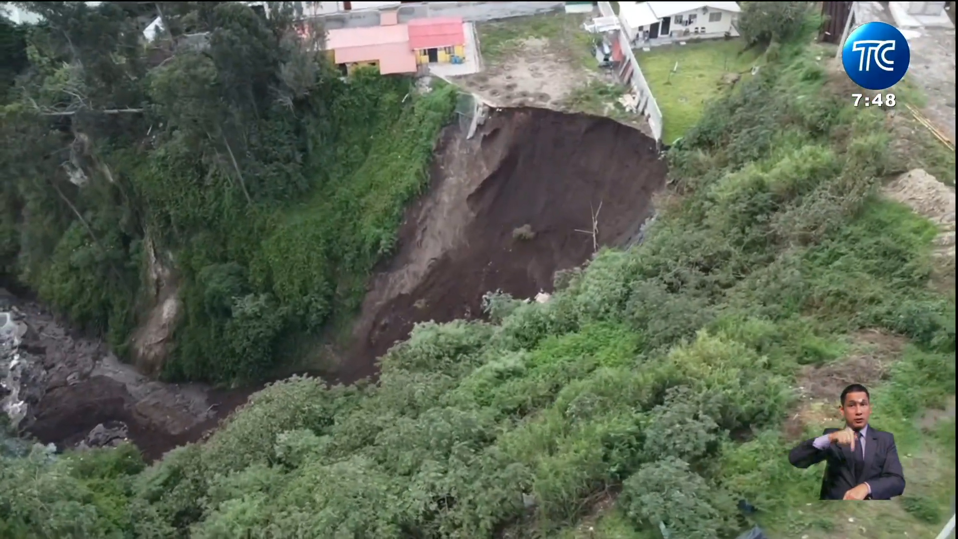 Residentes de la ciuadadela La Hospitalaria, en la entrada de Conocoto, en Quito, están preocupados debido al deslizamiento de tierra en una quebrada desde octubre de 2023 cuando se realizaron trabajos en un puente.