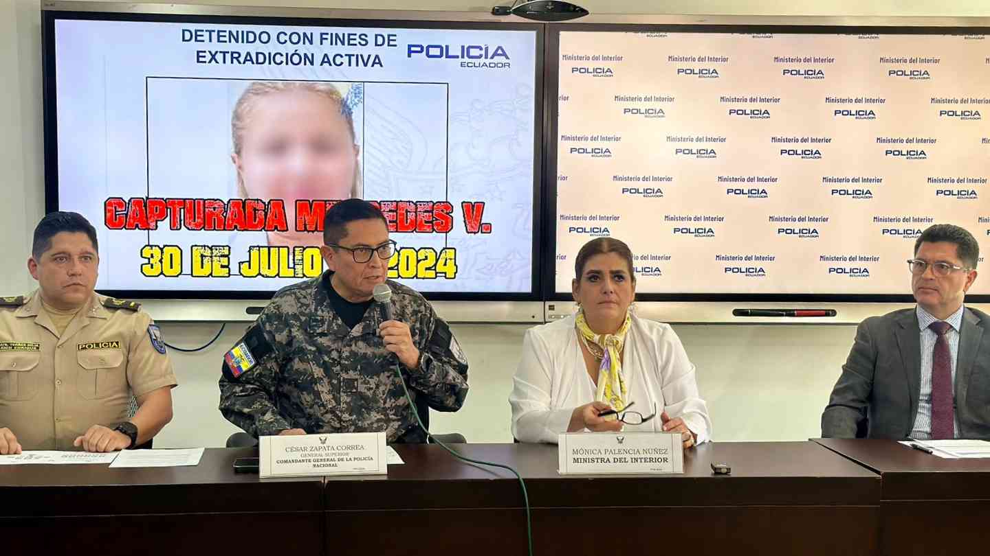 De su lado, el Comandante General de la Policía Nacional, General César Zapata, informó que Mercedes V. mantenía una boleta de localización y captura, así como una notificación roja de la INTERPOL, por el delito de delincuencia organizada.