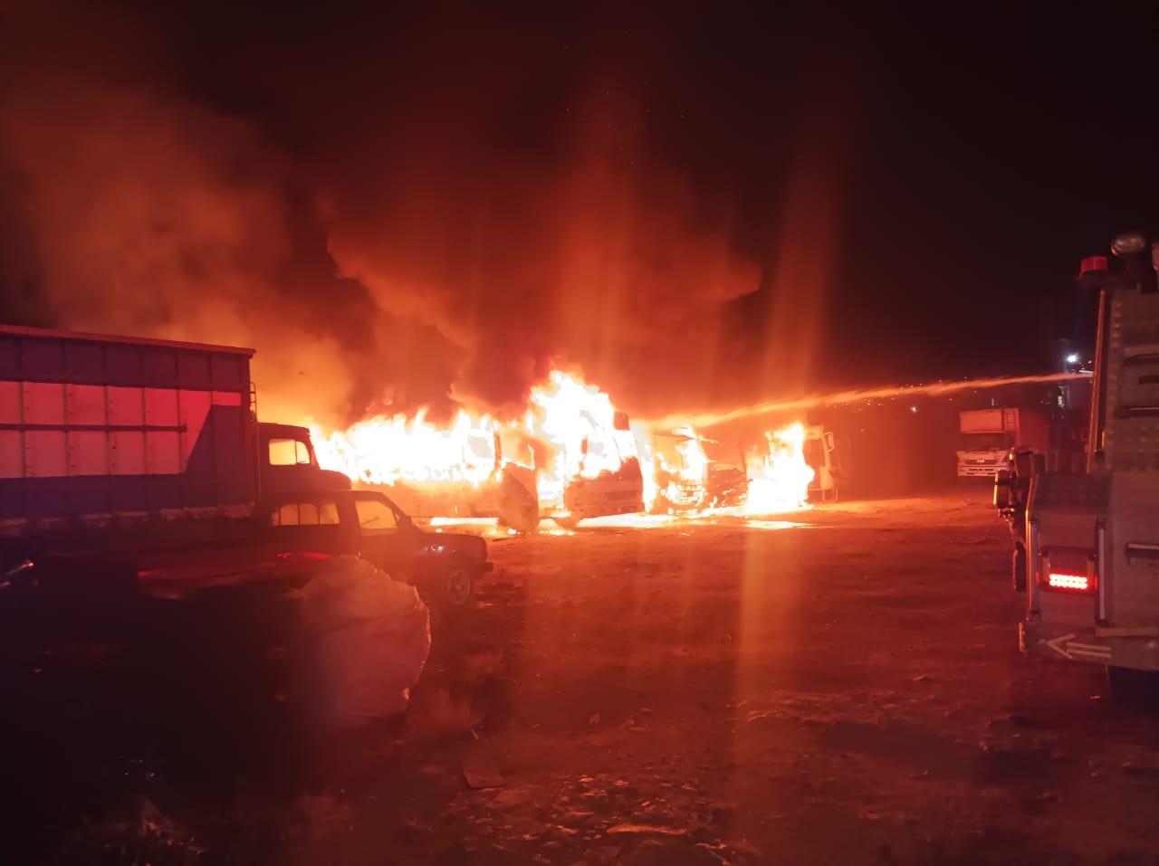 Cuatro buses urbanos se incendiaron la noche de este martes 15 de agosto dentro de un parqueadero privado ubicado en el kilómetro 16 de la vía a Daule, norte de Guayaquil.