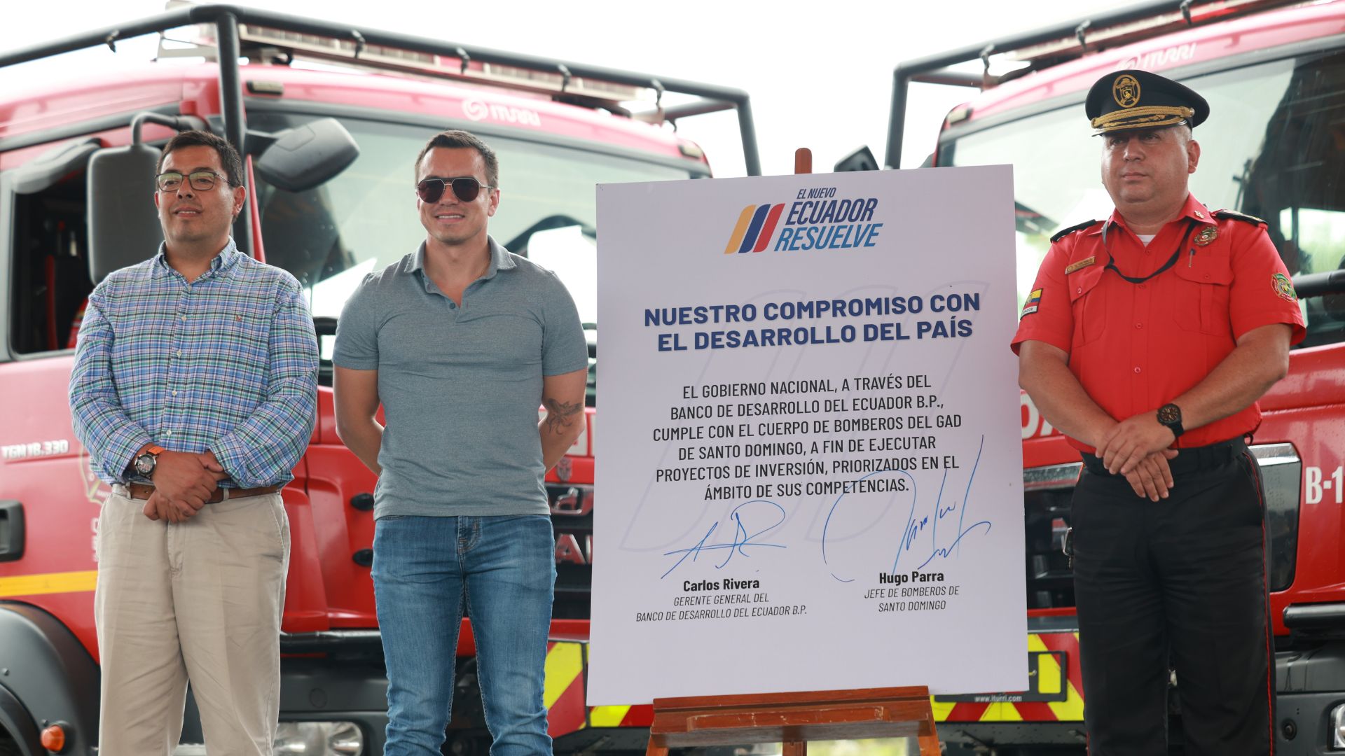 “El Cuerpo de Bomberos de Santo Domingo está conformado por valientes hombres y mujeres dispuestos a jugarse la vida por su pueblo. Gracias a la gestión eficiente del BDE, ahora contarán con los recursos necesarios para mejorar sus condiciones de trabajo”, expresó el Presidente Daniel Noboa.