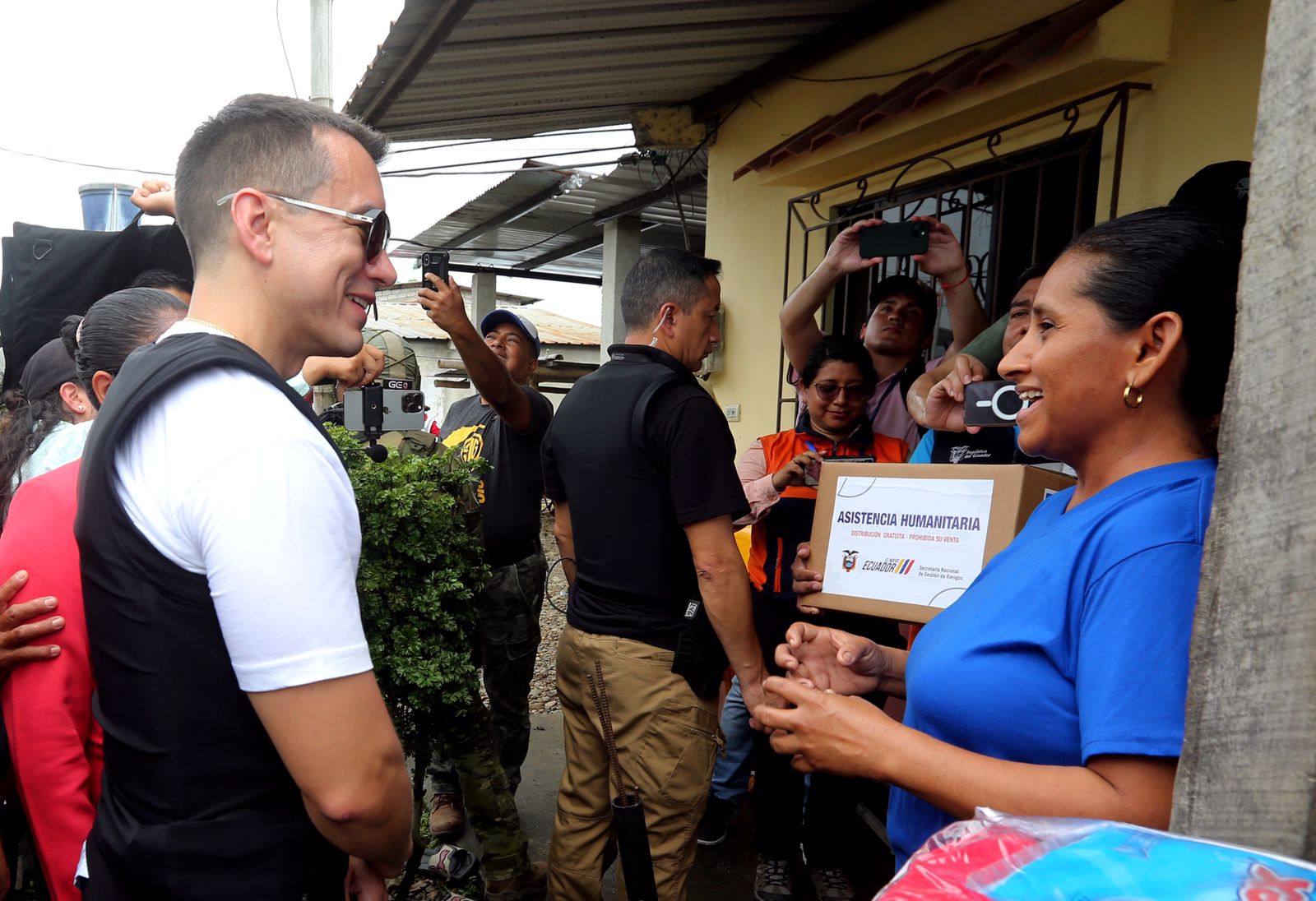 El presidente Daniel Noboa recorrió este jueves 29 de febrero de 2024 las zonas afectadas por lluvias en Babahoyo, provincia de Los Ríos. Durante el trayecto realizó la entrega de kits de asistencia humanitaria a las familias afectadas.