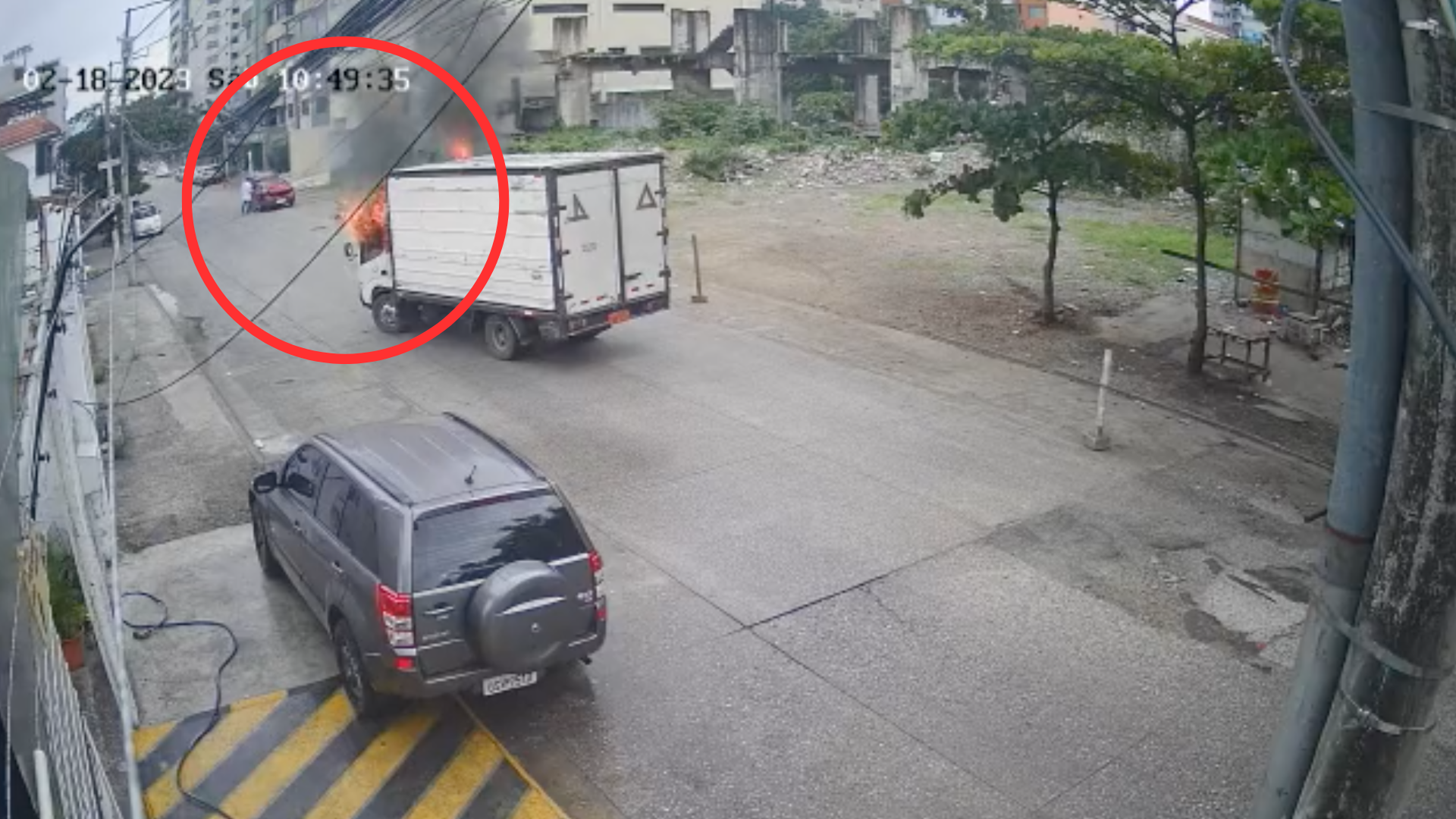 Los ocupantes huyeron rápidamente en un vehículo color rojo mientras que el camión avanzaba en llamas hasta impactarse contra una pared.