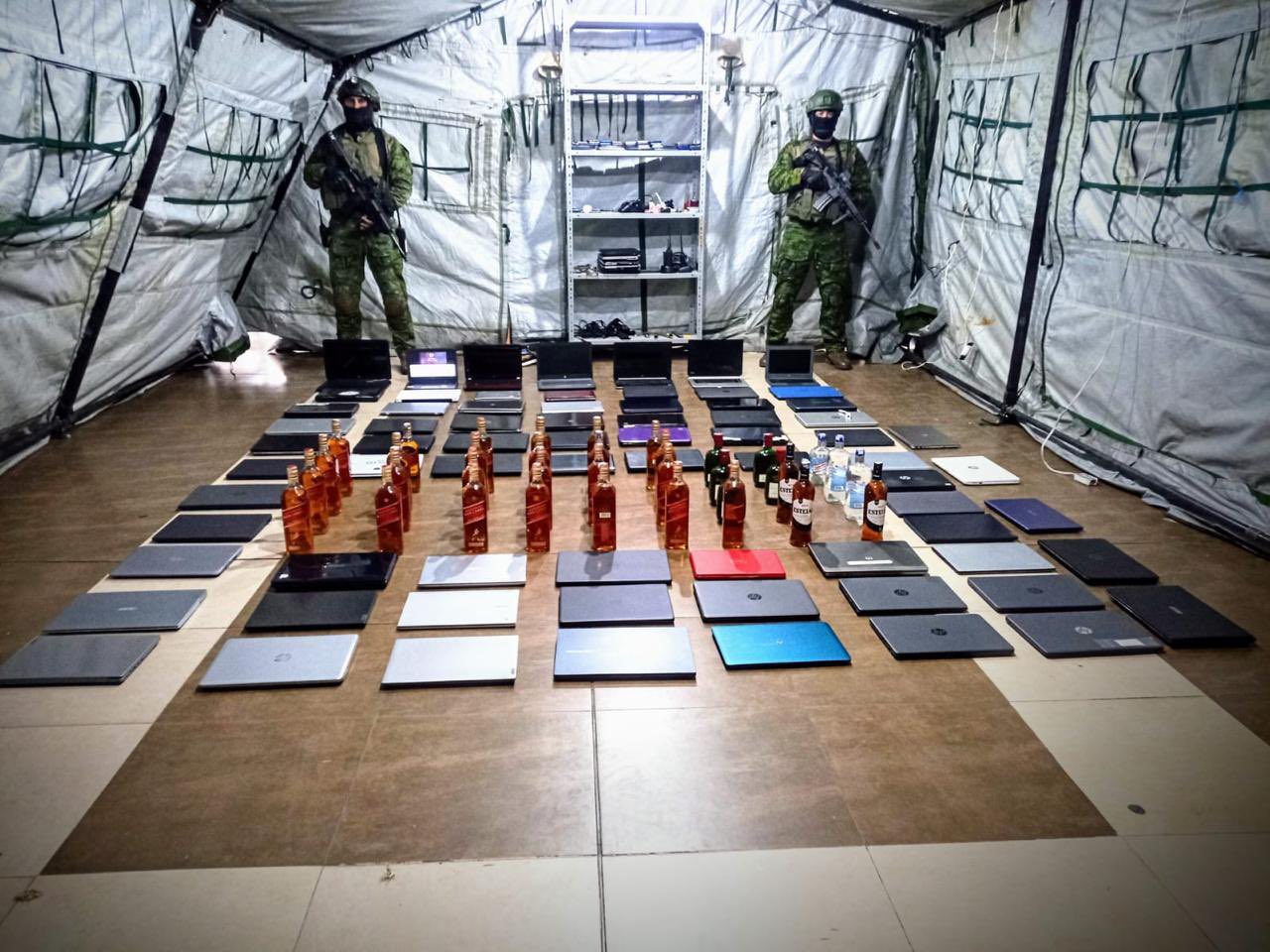 Adicionalmente al armamento, se incautaron más de 30 botellas de whisky y otros licores. Todo el material decomisado fue debidamente registrado en cadena de custodia por parte de las fuerzas uniformadas.