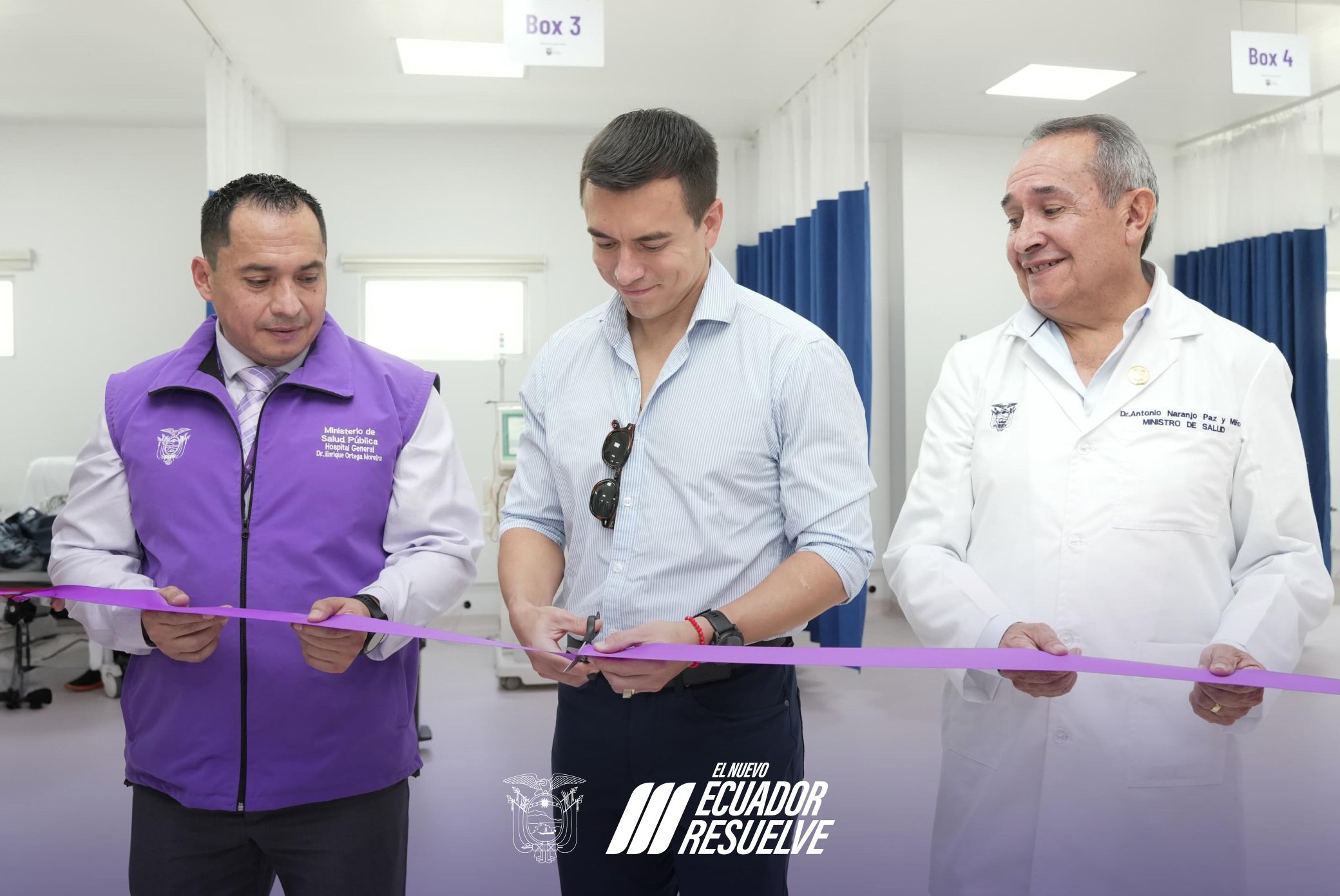 Este jueves, 11 de junio del 2024, el Presidente de la República, Daniel Noboa, junto al Ministro de Salud, Antonio Naranjo, participaron en la inauguración del servicio de diálisis del Hospital General Doctor Enrique Ortega Moreira, en Durán.