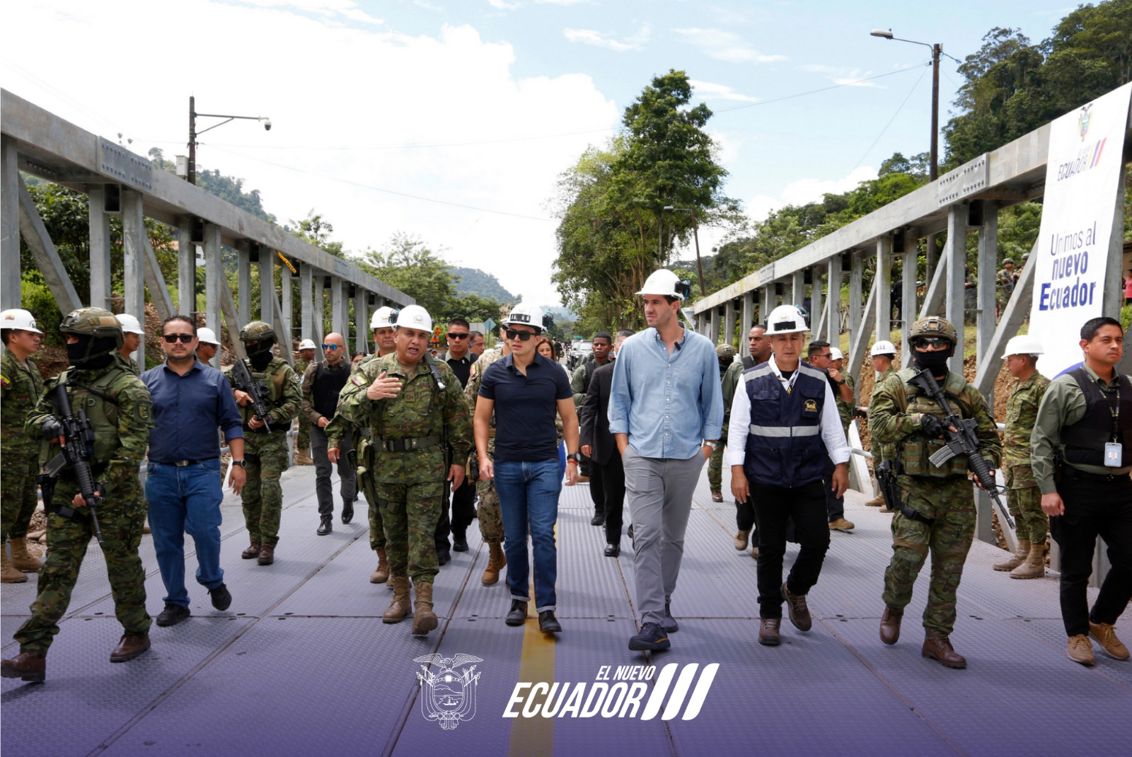El Presidente de la República, Daniel Noboa Azín, entregó de manera oficial, este lunes 29 de abril de 2024, el puente Delta, ubicado sobre el río Lelia, en el kilómetro 82 de la vía Alóag-Santo Domingo. La obra permitirá la conexión vial Costa-Sierra.