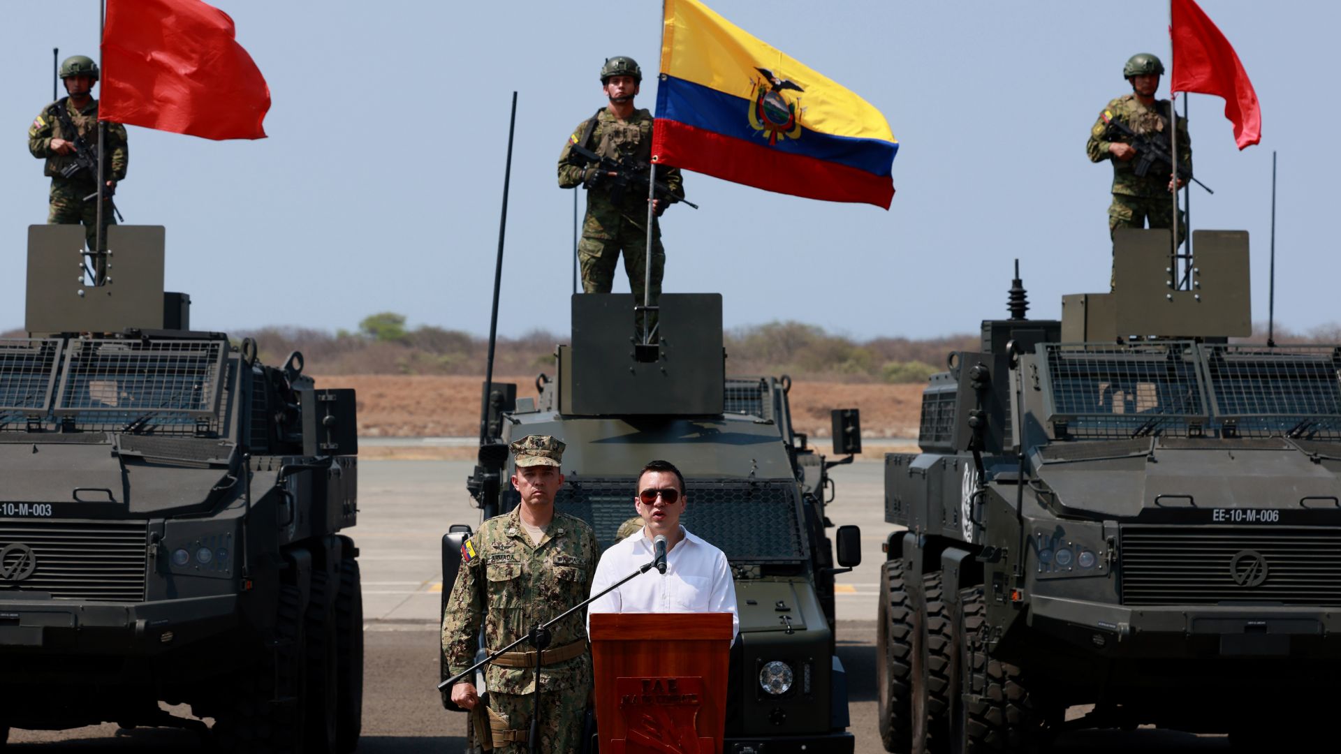 “Estos vehículos blindados, con equipamiento especial, fortalecerán nuestras operaciones para proteger nuestra soberanía y garantizar un futuro seguro para todos los ecuatorianos”, señaló el Mandatario durante el evento.