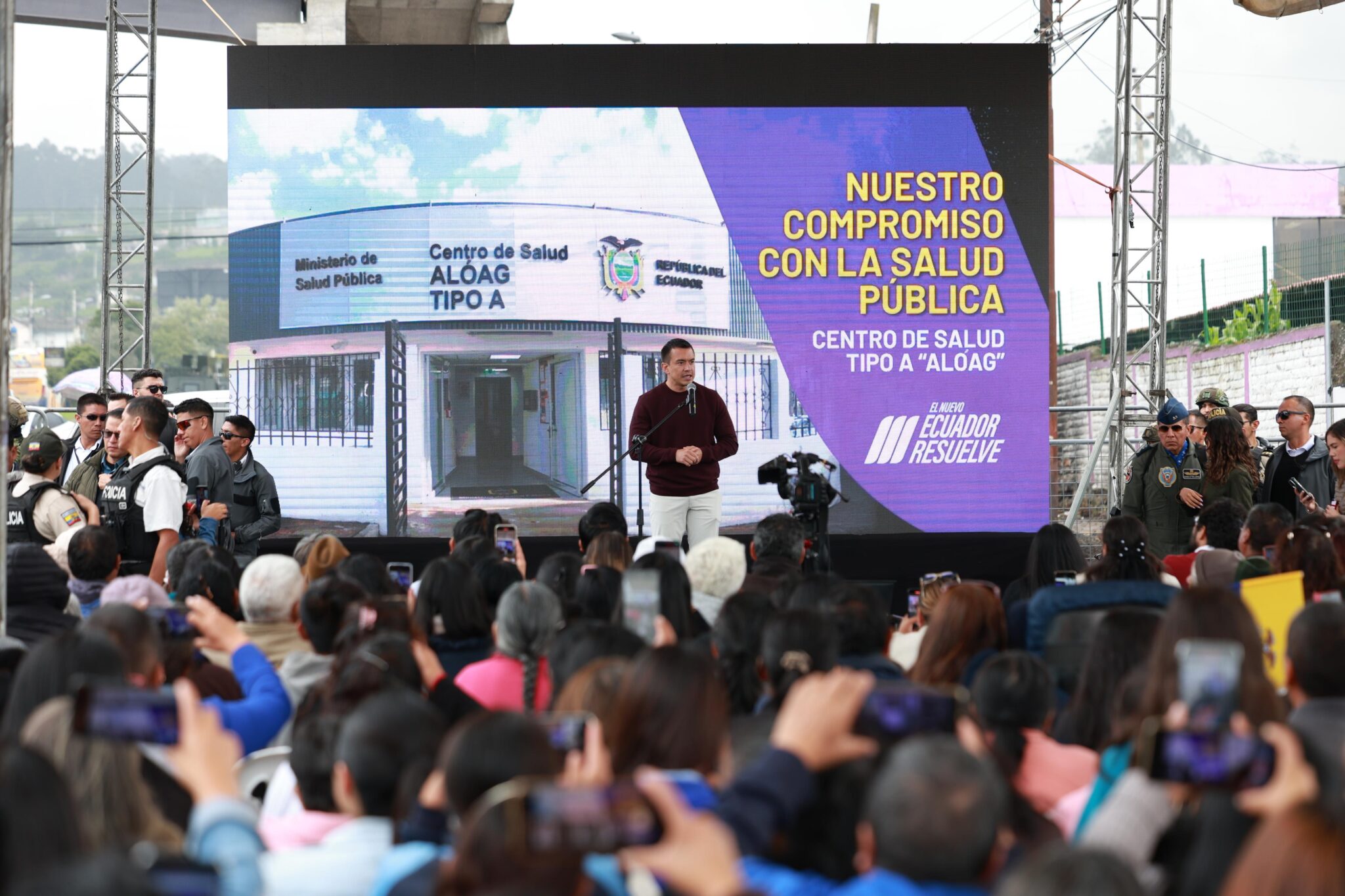 El Gobierno Nacional anunció una inversión en infraestructura, equipamiento y acceso equitativo a servicios médicos de calidad. Como parte de este compromiso, este 20 de febrero de 2025, el Presidente Daniel Noboa recorrió el Centro de Salud Tipo A Alóag, en el cantón Mejía, para verificar su avance y funcionamiento. Esta obra forma parte del proyecto de fortalecimiento del primer nivel de atención en salud, impulsado por el Ministerio de Salud Pública (MSP).