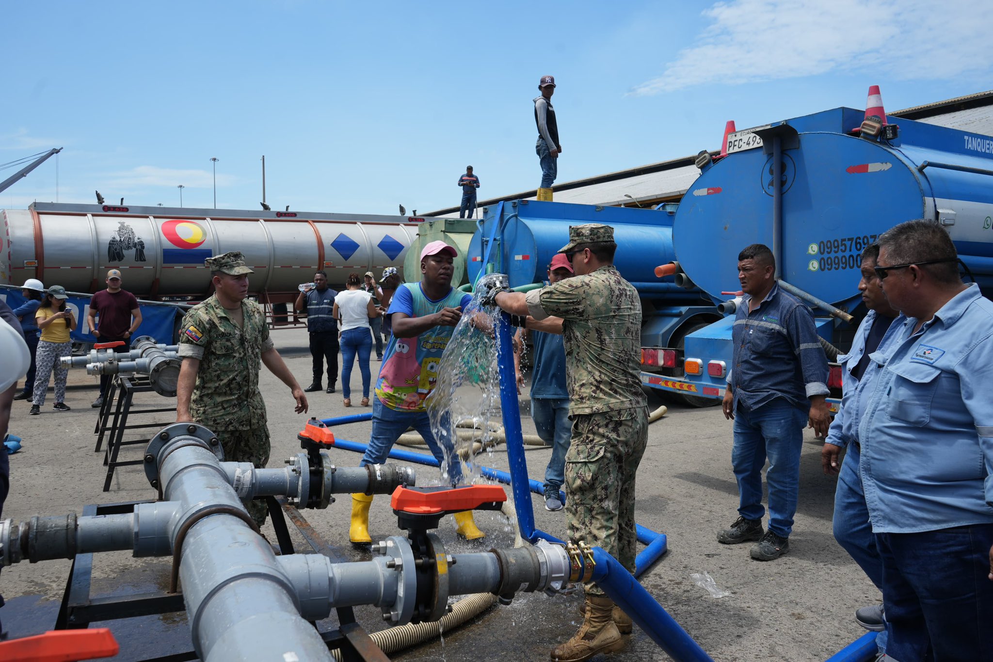 Mientras se restablece completamente el sistema, el Gobierno ha coordinado con la Armada del Ecuador el abastecimiento de agua potable mediante buques y tanqueros. Hasta el momento, se han distribuido 1’741.345 litros de agua en comunidades afectadas, mediante 50 tanqueros gestionados por entidades del Estado.