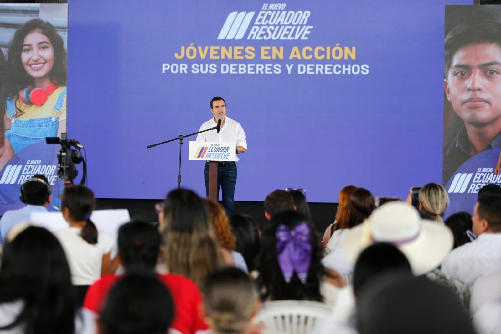 «Ahora somos los jóvenes quienes estamos resolviendo, porque llevamos la bandera del cambio, sacrificando incluso nuestras vidas para sacar adelante a nuestras familias y a nuestro país. Nadie dijo que esto iba a ser fácil ni que no íbamos a enfrentar problemas. Hemos heredado muchísimos desafíos del viejo Ecuador, circunstancias que nunca pensamos que tendríamos: sequías, olas de incendios, deslaves. Sin embargo, nos levantamos todos los días con la determinación de mejorar la vida de cada uno de ustedes».