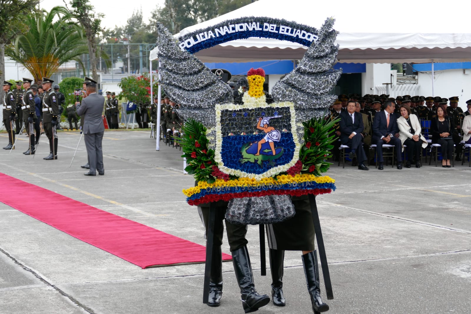 Las ofrendas florales, presentadas por diversas delegaciones, entidades e instituciones tanto públicas como privadas, así como por policías de otros países, fueron colocadas con respeto en el templo de los “Héroes Policiales”. El Gral. (SP) Carlos Calahorrano, excomandante de la Policía Nacional, destacó en su discurso la grandeza y el heroísmo de los hombres y mujeres de la Policía Nacional, enfatizando su valentía, entrega y sacrificio.