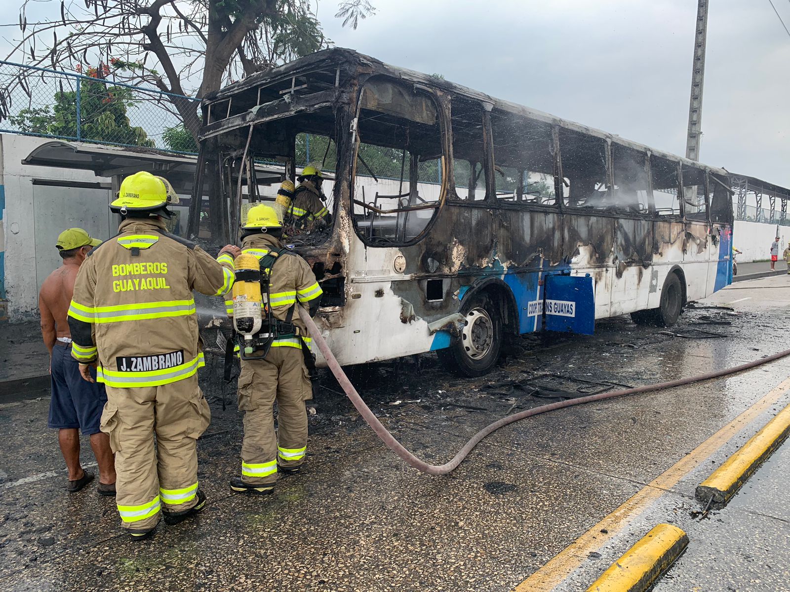 La Policía descarta intencionalidad en el incendio de un autobús urbano en Guayaquil.