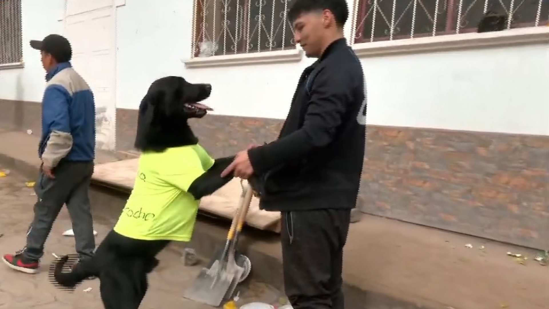 El perro Jacob viste una camisa en la que está escrito el nombre de su familia: «Pérez-Morocho«. Moradores comentan que le pusieron esta vestimenta como identificación para evitar su desaparición.