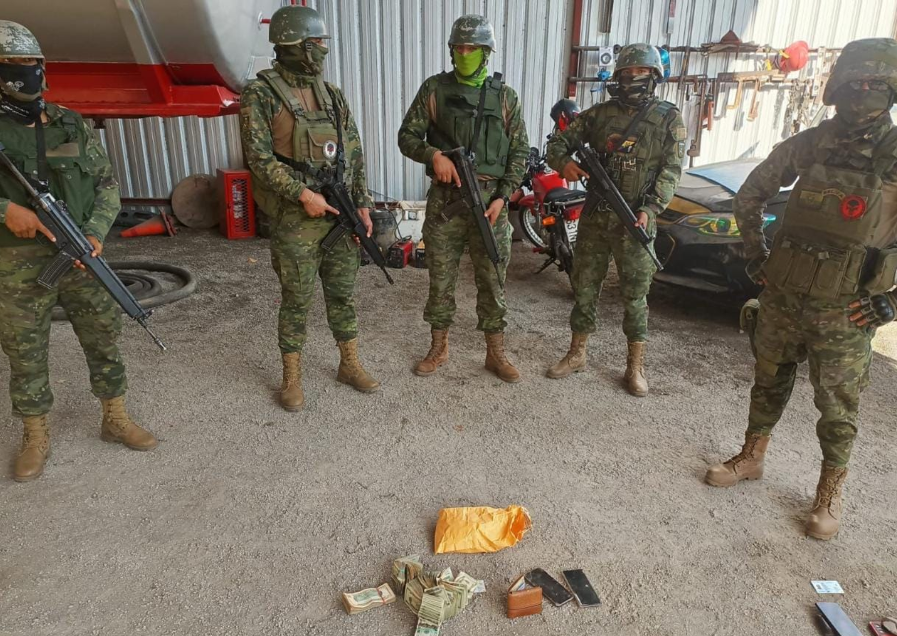 Además del combustible, las fuerzas armadas decomisaron 10,700 dólares en efectivo, una arma traumática de 9 mm, cuatro radios de comunicaciones, dos computadoras portátiles, nueve celulares y una camioneta de color negro.