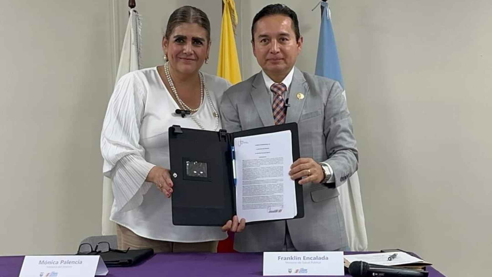 El Ministro de Salud, Franklin Encalada, y la Ministra del Interior, Mónica Palencia, firmaron un Acuerdo Interministerial para conformar ‘Establecimientos de Salud Seguros’. Esta iniciativa busca garantizar la seguridad del personal y usuarios en todas las unidades de salud del país.