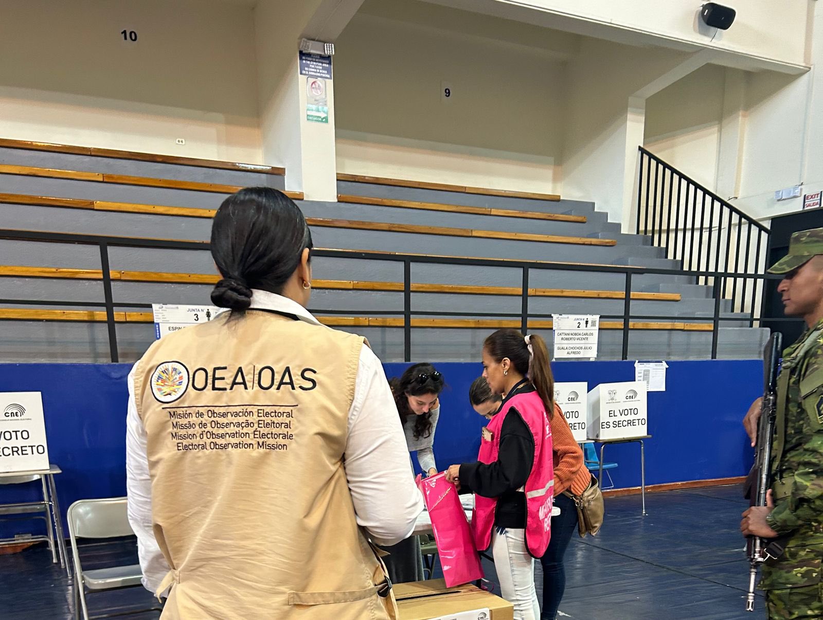 Asimismo, la Organización de los Estados Americanos observa el cierre de las Juntas Receptoras del Voto y el proceso de cierre y escrutinio del Referéndum y Consulta Popular que se realizó en el país.