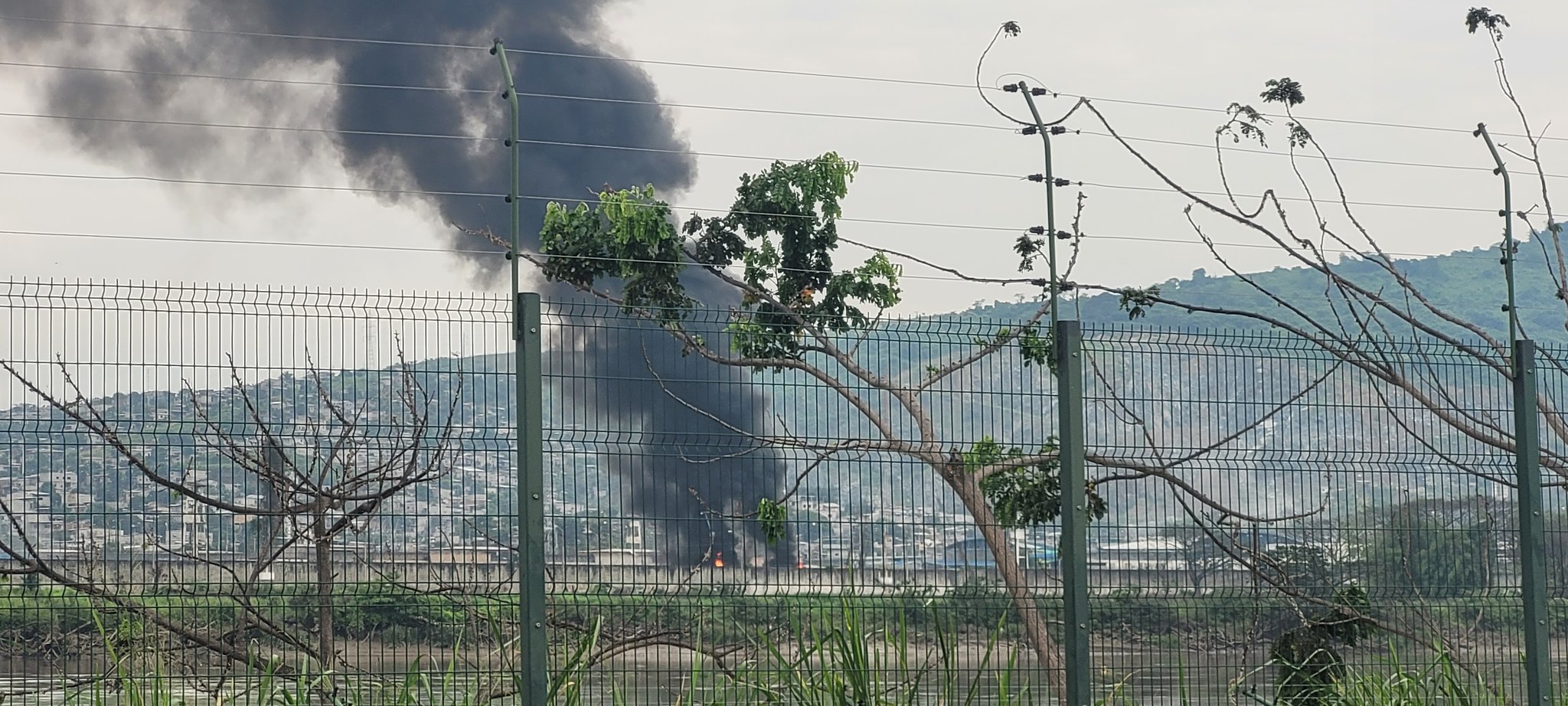 Una densa humareda que emanaba del Centro de Rehabilitación Social de Varones de Guayaquil atrajo la atención de quienes transitaban por los alrededores del recinto carcelario.
