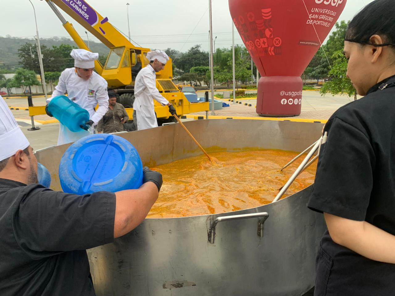 Tras la cocción, una grúa levantó la olla, certificando un peso de 1.936 kilos, este peso fue suficiente para adjudicar el récord Guinness a Portoviejo.
