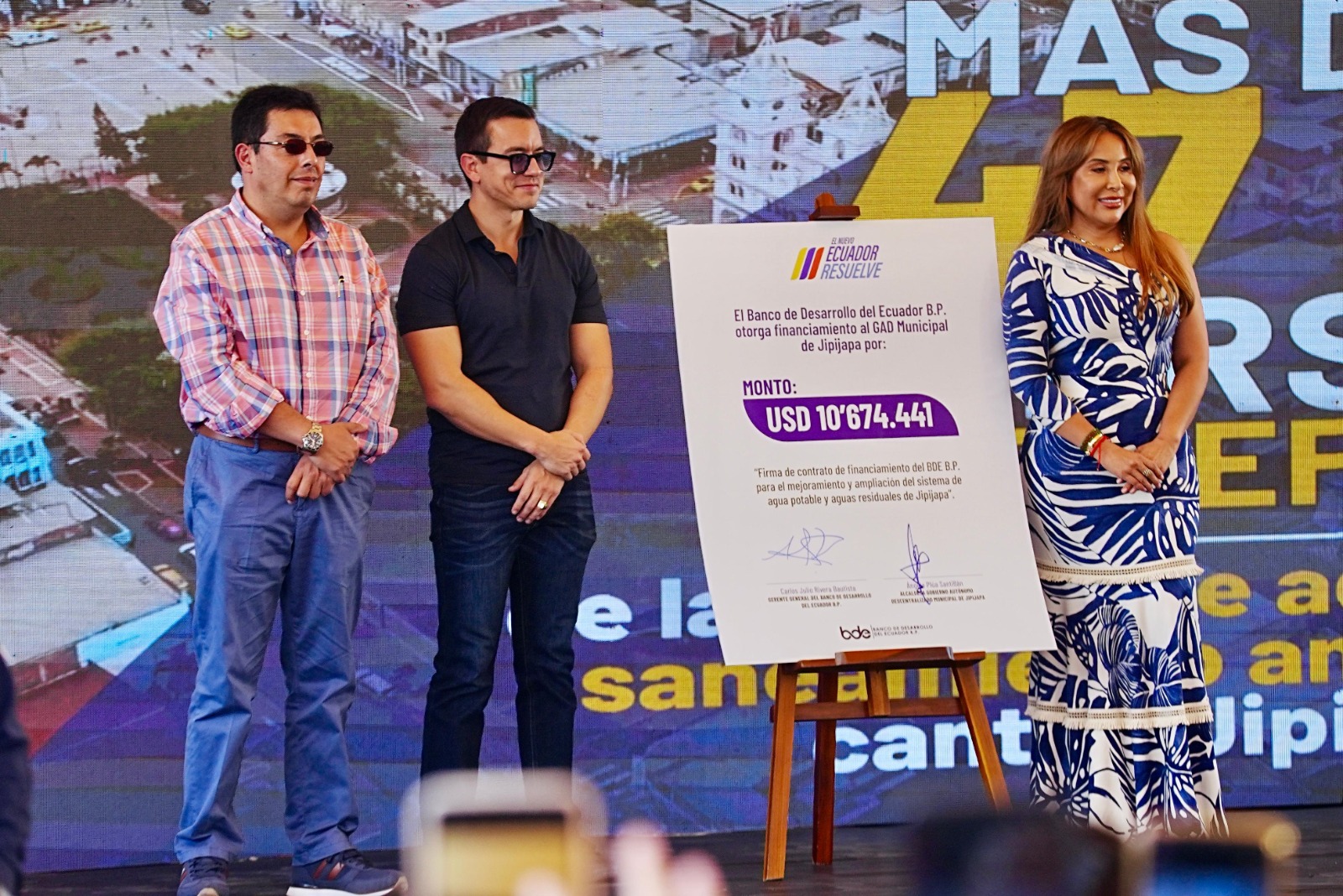 El Presidente Daniel Noboa suscribió el contrato de financiamiento por 10.6 millones de dólares para la ejecución de proyectos de agua potable y saneamiento ambiental en el cantón Jipijapa, provincia de Manabí. Este contrato, respaldado por el Banco de Desarrollo del Ecuador (BDE) y el Gobierno Autónomo Descentralizado (GAD) Municipal de Jipijapa, tiene como objetivo mejorar las condiciones de vida de miles de manabitas al garantizar el acceso a agua limpia y un sistema eficiente de alcantarillado.