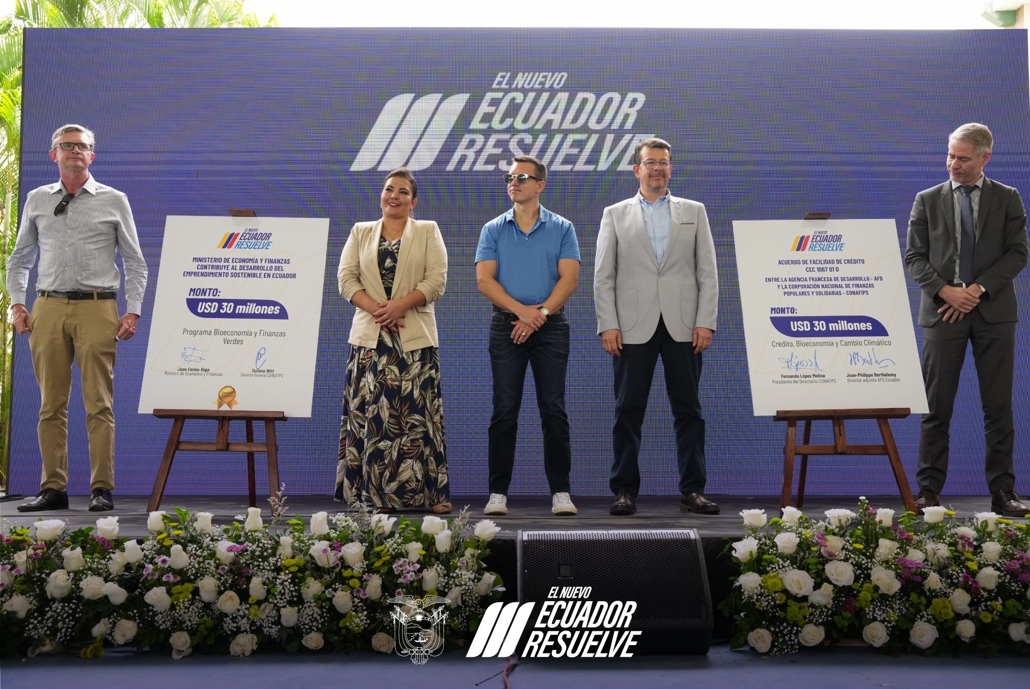 Este martes, 13 de agosto del 2024, el Presidente de la República, Daniel Noboa, lideró la suscripción de un acuerdo crediticio por USD 30 millones entre la Agencia Francesa de Desarrollo (AFD) y la Corporación Nacional de Finanzas Populares y Solidarias (CONAFIPS). Estos fondos se destinarán a proyectos centrados en bioeconomía, cambio climático y emprendimientos liderados por mujeres. La ceremonia tuvo lugar en la Universidad Técnica de Manabí