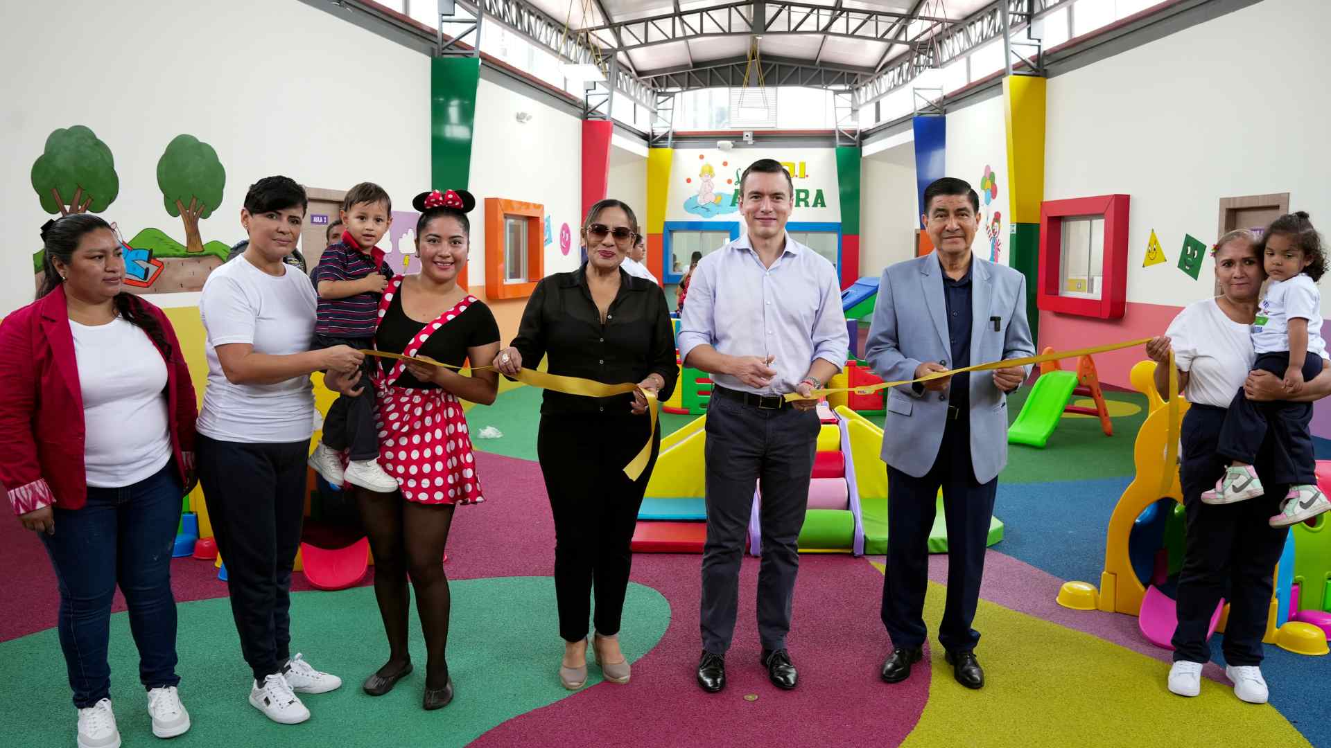 Durante la inauguración, el Presidente Noboa expresó su compromiso con la infancia ecuatoriana: “Mientras yo esté aquí, haré todo lo posible para que cada vez haya más niñas y niños con futuro”. La inversión del Gobierno Nacional fue de USD 484.456, mientras que el municipio aportó con USD 113.480 para la construcción.