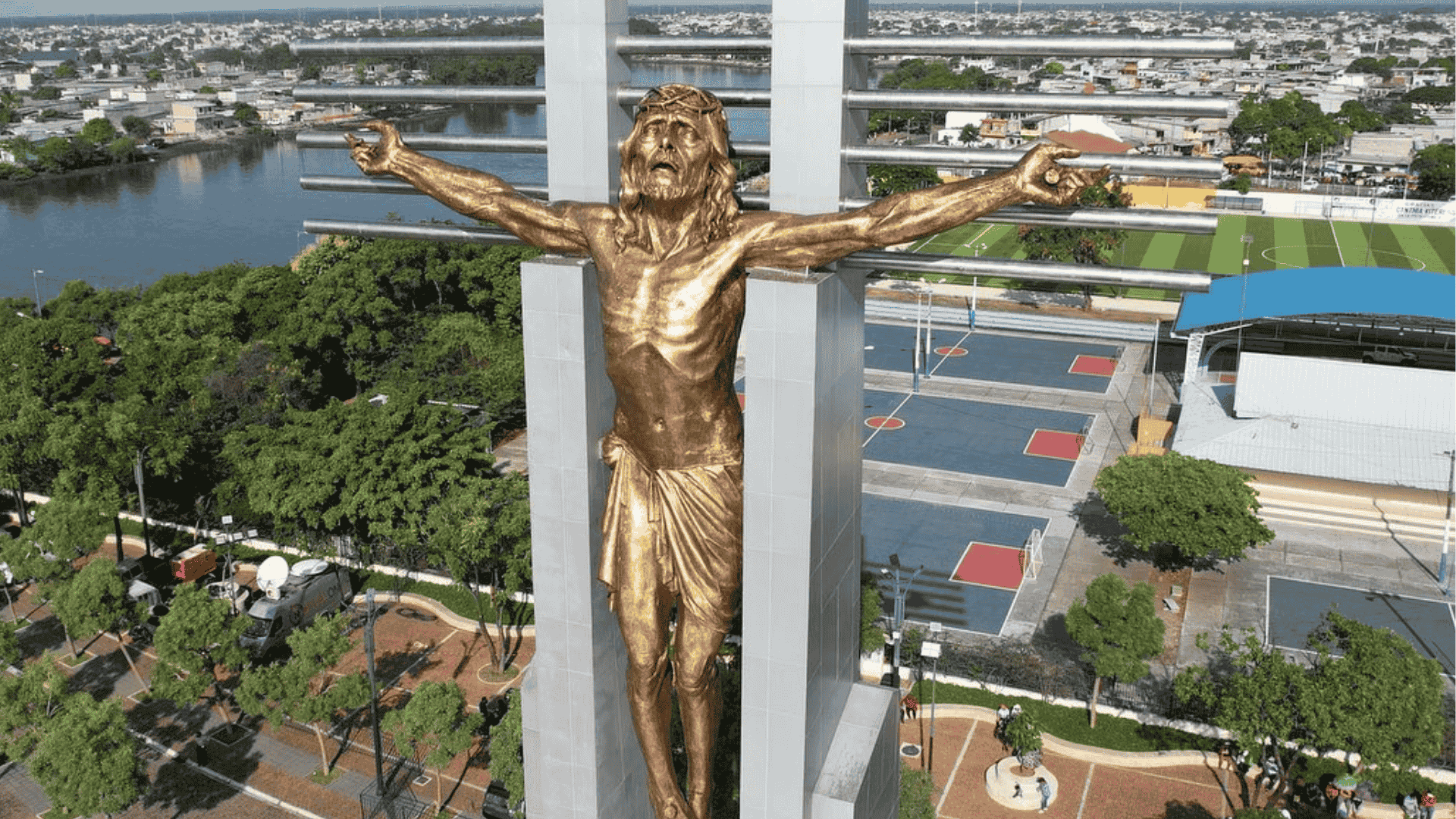 El punto final de la procesión es el monumento La Fe del Cristo del Consuelo.