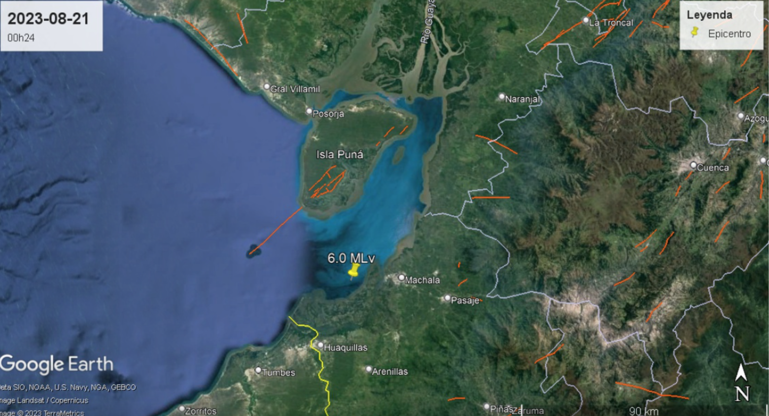 El movimiento telúrico se registro a las 00:24 del lunes 21 de agosto a una profundidad de 30 km a 14.75 km de Machala.