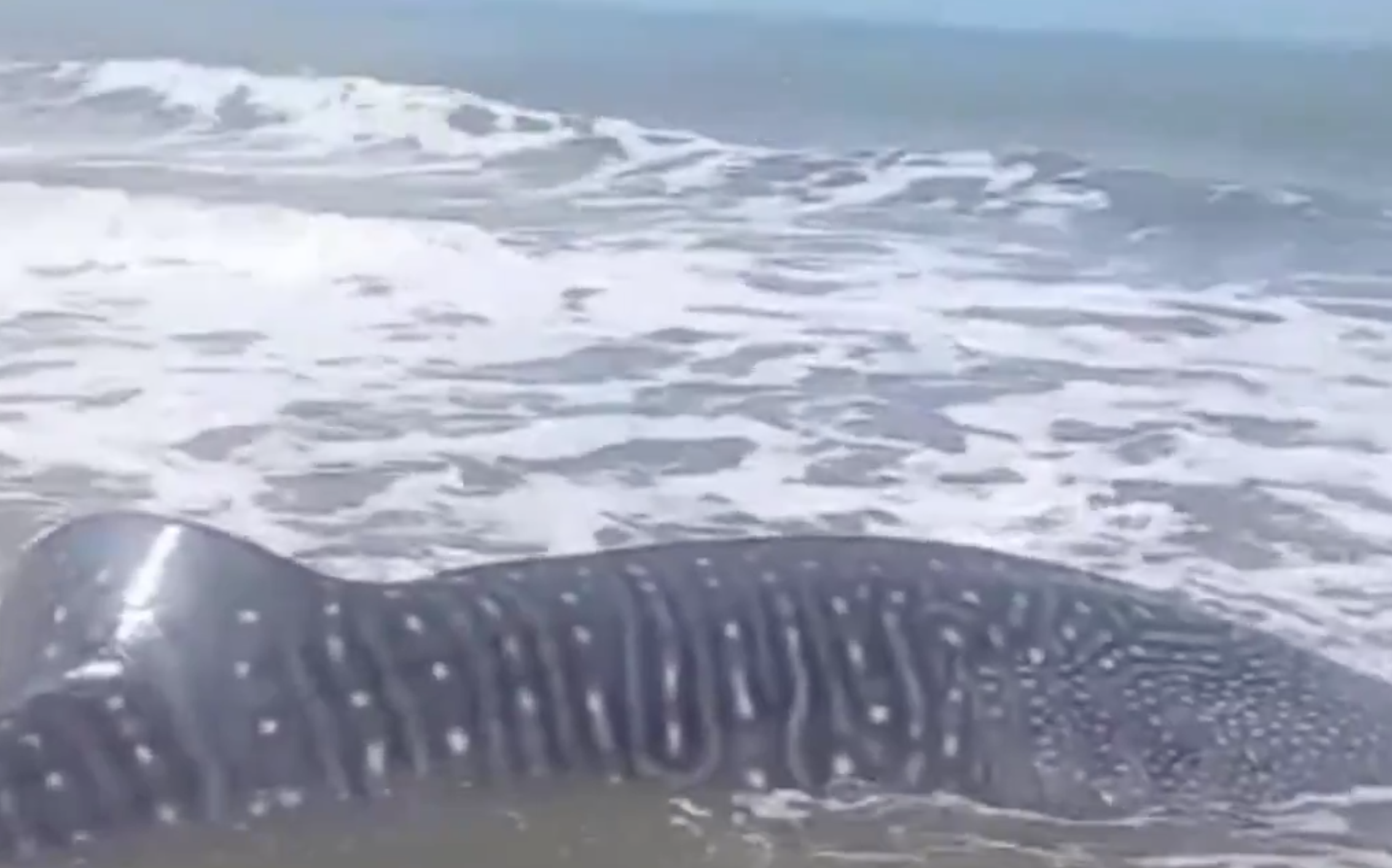 Socorristas que acudieron al rescate de una joven con discapacidad que se ahogaba en la playa de Las Palmas, Esmeraldas, se percataron de un tiburón ballena varado en la zona.
