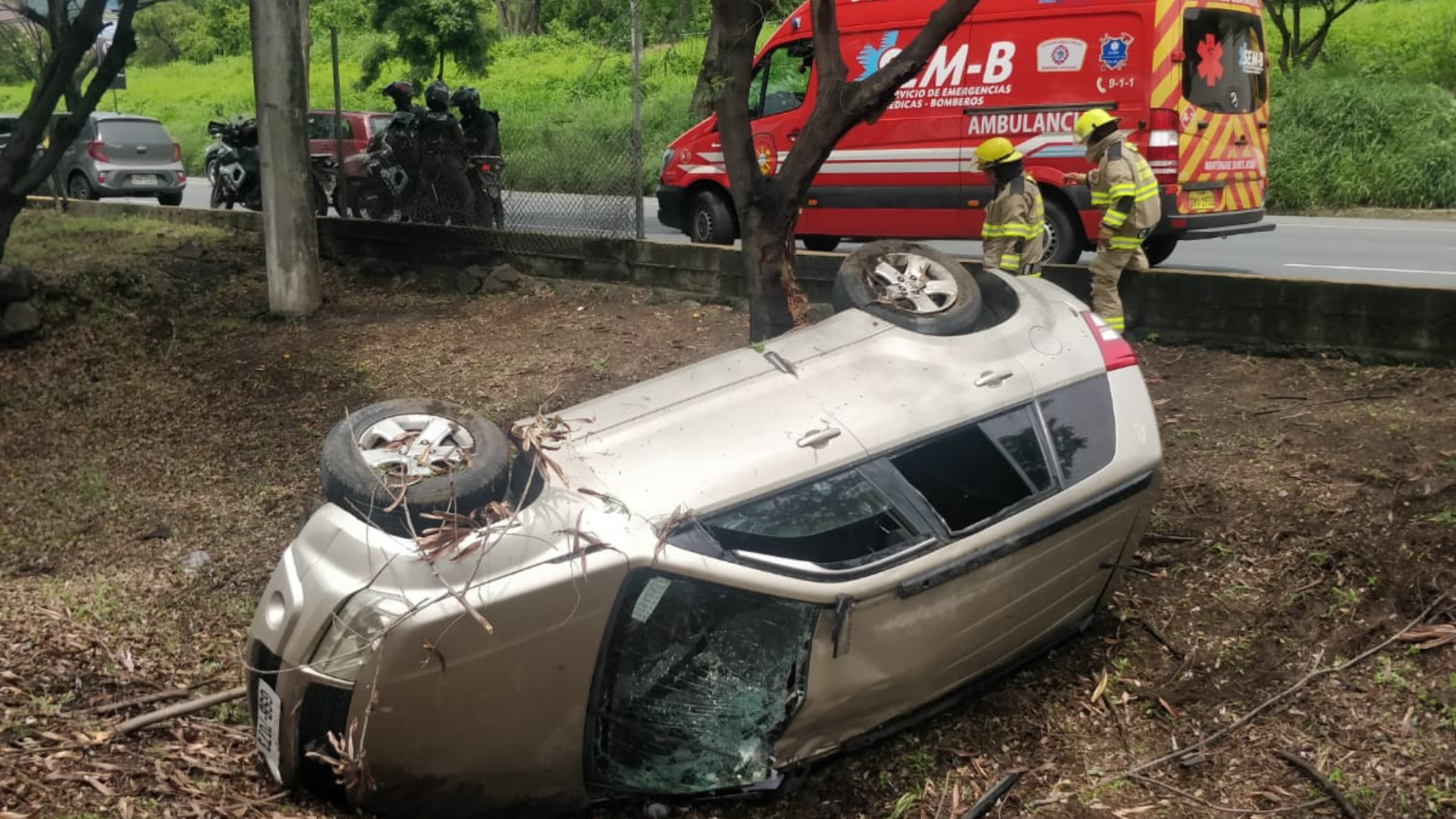 Un auto quedó volcado dentro la zanja que se encuentra en medio de la vía.