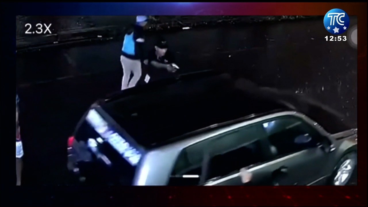 Cámaras de seguridad registraron el momento en que Rider Sánchez fue asesinado por un robo. El exalcalde de Quinindé, Ángel Torres, indicó que se encontraba en el vehículo durante el ataque armado.