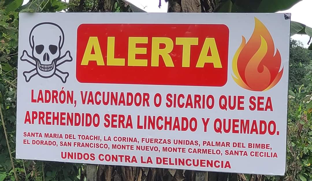 Según información extraoficial, se conoce que los comuneros fueron los causantes de este acto por los altos índices delictivos, pues estos ciudadanos habrían puesto un aviso «Alerta: ladrón, vacunador o sicario que sea aprehendido será linchado y quemado»