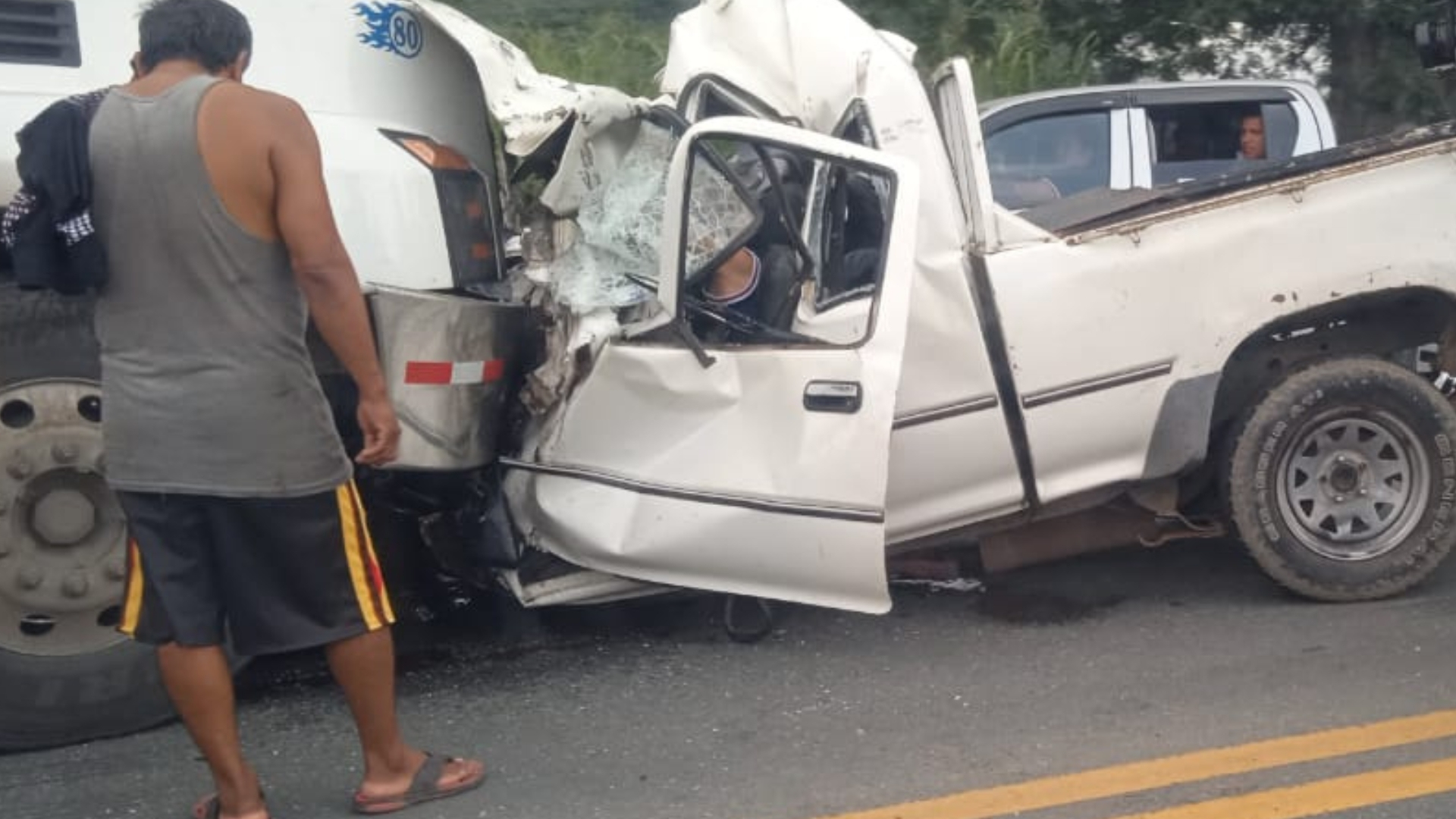En la camioneta se transportaban las víctimas mortales y quedó totalmente destrozada. Por otro lado, el conductor del tráiler se habría dado la fuga y aparentemente rebasó en la carretera.