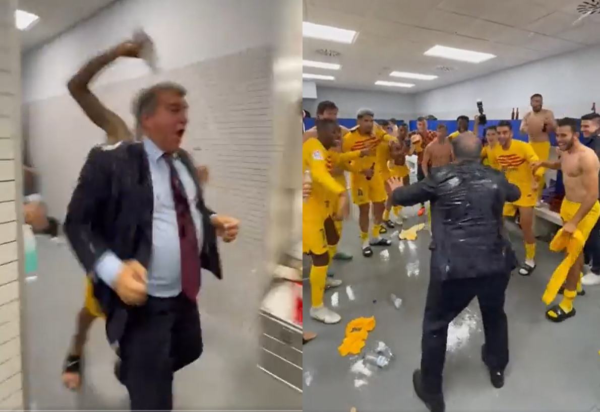 Los jugadores del FC Barcelona celebraron a lo grande la consecución del título junto a Joan Laporta, presidente del club, que se unió a la fiesta culé en los vestuarios.