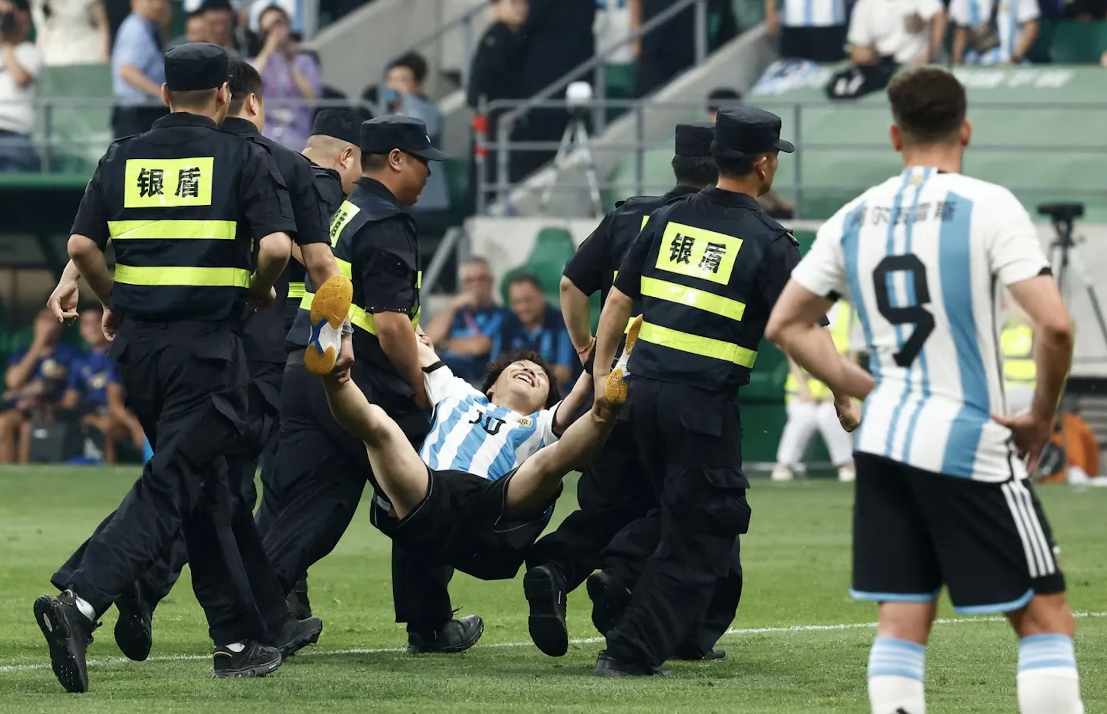 🏃🏻 ¡Qué corrida! Un fanático chino ingresó a la cancha en pleno partido de Argentina contra Australia buscando abrazar a Messi pic.twitter.com/fqaiNVYoWg